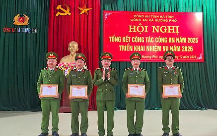 Chiều ngày 26/12/2025, Công an xã Hương Phố tổ chức Hội nghị tổng kết công tác năm 2025, triển khai nhiệm vụ năm 2026 và phát động phong trào thi đua “Vì an ninh Tổ quốc” năm 2026.
