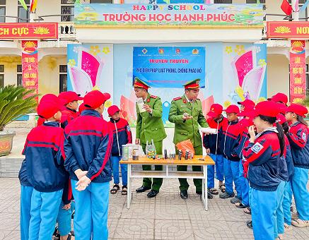 Sáng 29/12, Công an xã Cẩm Xuyên phối hợp với Tỉnh đoàn Hà Tĩnh, Câu lạc bộ Tư vấn, trợ giúp trẻ em tỉnh Hà Tĩnh và Đoàn TNCS Hồ Chí Minh xã Cẩm Xuyên tổ chức chương trình tuyên truyền, phổ biến pháp luật về vũ khí, vật liệu nổ, công cụ hỗ trợ và pháo cho hơn 600 cán bộ, giáo viên và học sinh Trường Tiểu học Cẩm Quang; đồng thời trao tặng máy lọc nước sạch cho nhà trường.