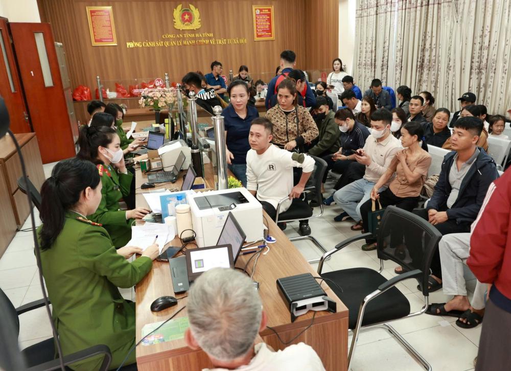 Tại Phòng Quản lý xuất nhập cảnh, Công an tỉnh Hà Tĩnh, những ngày đầu năm mới, lượng người dân đến làm thủ tục cấp, đổi hộ chiếu và giải quyết hồ sơ xuất nhập cảnh tăng cao so với ngày thường. Xác định lượng người tăng cao, quá trình tiếp nhận hồ sơ có thể phát sinh tình trạng ùn tắc, nghẽn mạng, đơn vị đã chủ động chuẩn bị đầy đủ máy móc, trang thiết bị và bố trí cán bộ hướng dẫn, hỗ trợ công dân. Hiện nay, thủ tục cấp, đổi hộ chiếu đã được triển khai trực tuyến trên Cổng dịch vụ công. Tuy nhiên, do thời gian sau Tết khá gấp rút, nhiều người dân vẫn lựa chọn đến trực tiếp để được cán bộ hướng dẫn thao tác nộp hồ sơ trực tuyến, đồng thời giải đáp các vướng mắc phát sinh trong quá trình kê khai thông tin.