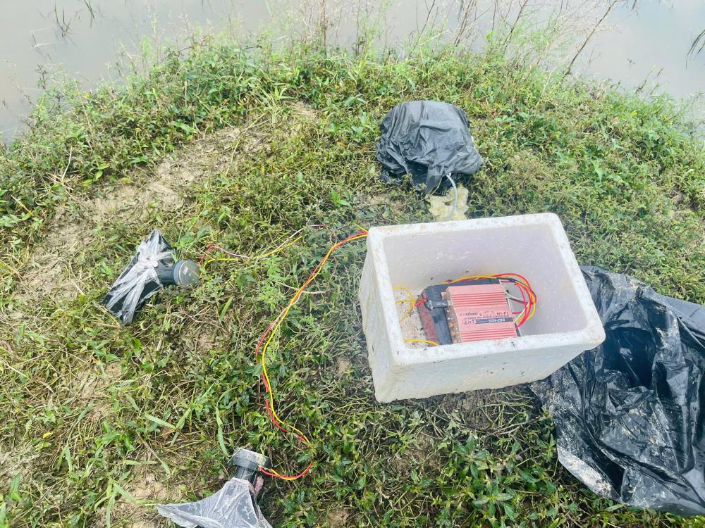 Qua công tác tuần tra kiểm soát, sáng ngày 05/11, tổ công tác Công an xã phát hiện và thu giữ 01 bộ phát tín hiệu gồm 02 loa, 01 bình ắc quy, 300m lưới cước mờ màu xanh được buộc vào các cọc sắt, là dụng cụ dùng để bẫy, bắt chim trời trái phép.