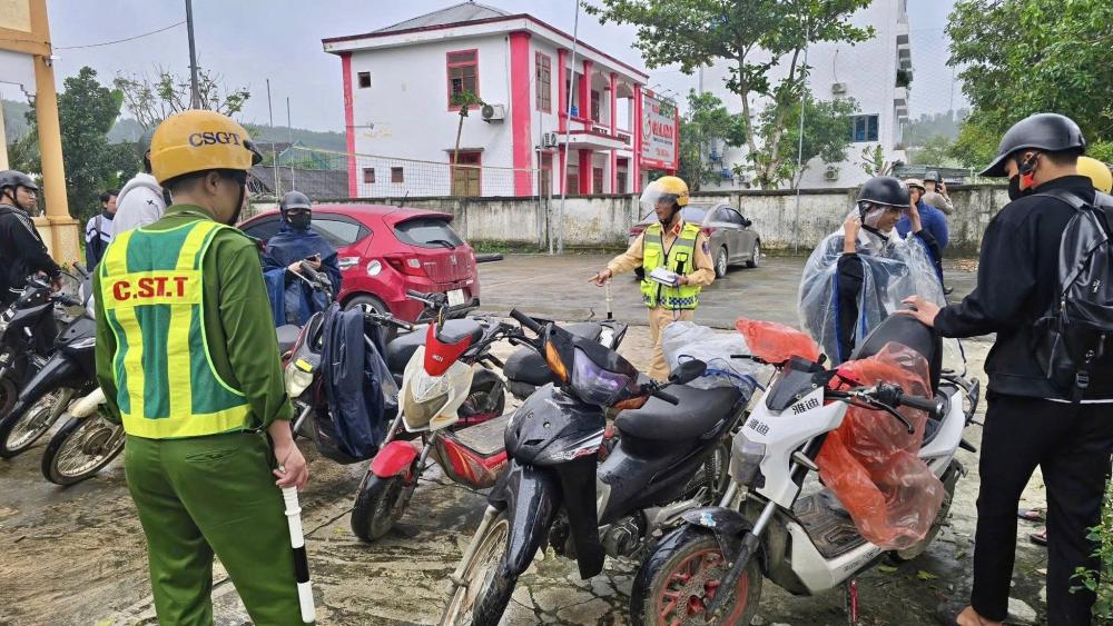 Trong quá trình triển khai, lực lượng CSGT phối hợp chặt chẽ với Công an các xã, phường tiến hành kiểm tra toàn diện các bãi gửi xe, tuyến đường dẫn đến trường, các phương tiện do học sinh điều khiển. Qua đó, nhiều trường hợp học sinh điều khiển mô tô chưa đủ tuổi, xe không đăng ký, không bảo đảm an toàn, không đội mũ bảo hiểm đạt chuẩn đã được phát hiện. Việc kiểm tra này giúp lực lượng chức năng nắm chắc tình hình, đồng thời tạo cơ sở để xử lý nghiêm các vi phạm, răn đe và phòng ngừa nguy cơ tai nạn.