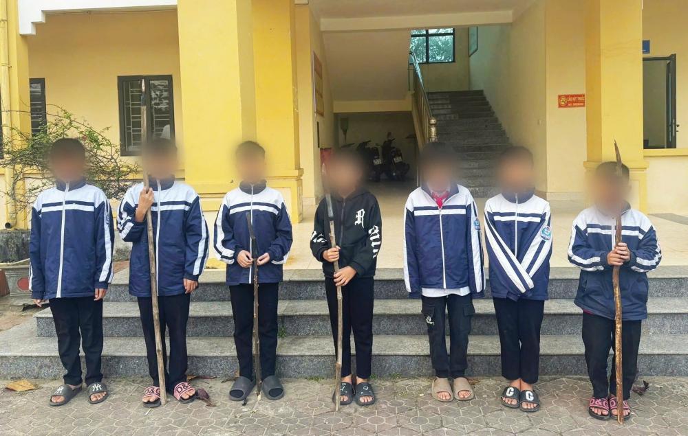 Qua quá trình làm việc, lực lượng chức năng đã phát hiện, ngăn chặn kịp thời một nhóm gồm 07 học sinh Trường THCS Thiên Cầm, đều trú tại xã Thiên Cầm, tỉnh Hà Tĩnh. Tại hiện trường, Công an xã đã thu giữ các hung khí mà nhóm học sinh mang theo, đồng thời phối hợp với nhà trường và gia đình đưa các em về trụ sở để làm việc theo quy định.