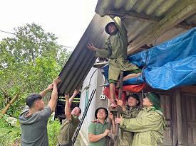Ngay sau khi bão số 5 đi qua, gây thiệt hại nặng nề về nhà cửa, hoa màu tại nhiều địa bàn, lực lượng Công an phường Trần Phú, Công an xã Hương Xuân đã kịp thời triển khai lực lượng xuống cơ sở, hỗ trợ Nhân dân khắc phục hậu quả, ổn định đời sống.