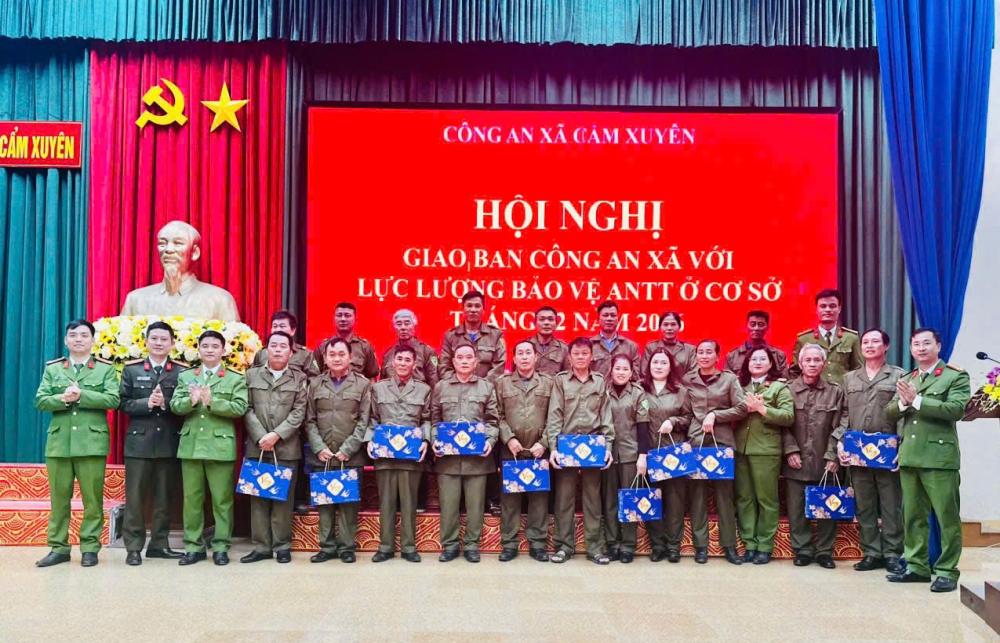 Trong khi đó, Công an xã Cẩm Xuyên đã tổ chức giao ban, gặp mặt và tặng quà lực lượng tham gia bảo vệ an ninh trật tự ở cơ sở nhân dịp Tết Nguyên đán Bính Ngọ 2026. Tại buổi giao ban, Công an xã đã thông tin tình hình an ninh trật tự trên địa bàn, ghi nhận và biểu dương những đóng góp tích cực của lực lượng tham gia bảo vệ an ninh trật tự ở cơ sở; đồng thời triển khai nhiệm vụ bảo đảm an ninh trật tự trước, trong và sau Tết, phục vụ các nhiệm vụ chính trị tại địa phương.