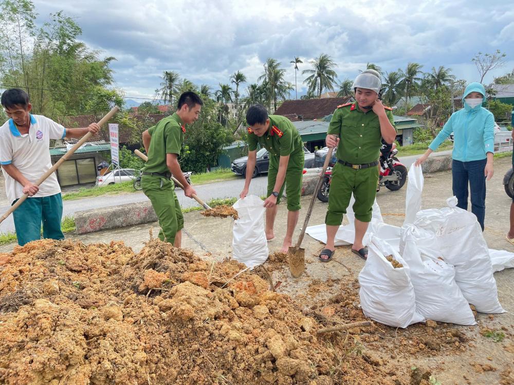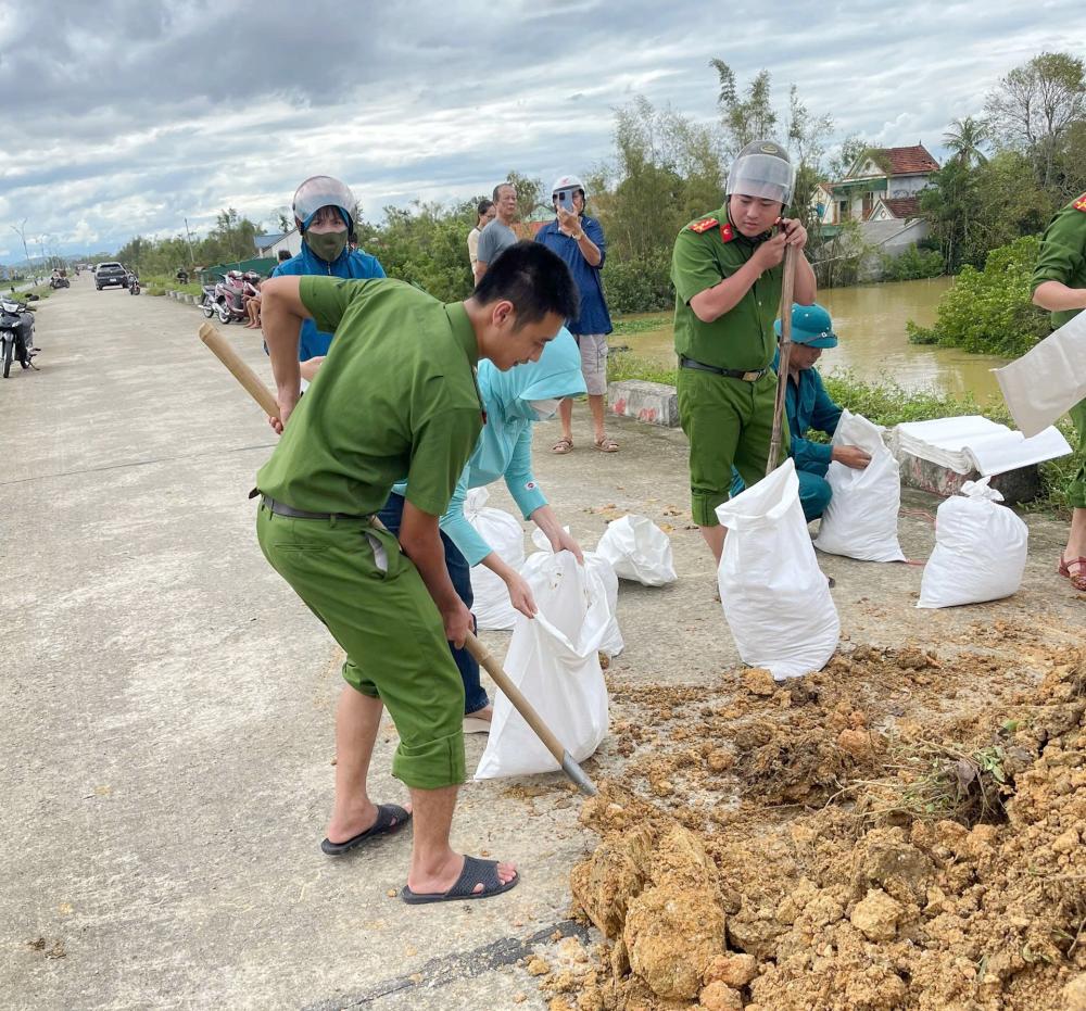 Tại hiện trường, nước lũ chảy xiết, đe dọa phá vỡ thêm nhiều đoạn kè, nhưng với tinh thần trách nhiệm, dũng cảm, cán bộ, chiến sĩ Công an xã đã trực tiếp lao vào dòng nước, cùng các lực lượng khẩn trương gia cố điểm vỡ, vận chuyển hàng trăm bao tải cát, đá, đất, tranh thủ từng phút để chặn dòng, ngăn không cho nước tiếp tục tràn vào trong. Song song đó, lực lượng Công an cũng tiến hành phân luồng, chốt chặn tại những vị trí nguy hiểm, di dời kịp thời người già, trẻ nhỏ và những hộ dân sinh sống sát vị trí bị sự cố đến nơi an toàn.