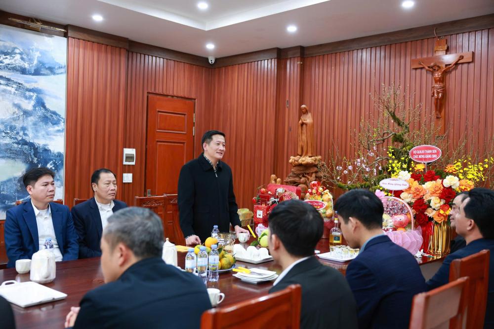 Thay mặt lãnh đạo Công an tỉnh, đồng chí Thượng tá Nguyễn Quốc Hùng đã gửi lời chúc mừng Giáng sinh an lành, hạnh phúc tới các linh mục, chức sắc, tu sĩ cùng toàn thể bà con giáo dân; đồng thời ghi nhận, đánh giá cao những đóng góp tích cực của các linh mục và giáo dân trong việc chấp hành chủ trương của Đảng, chính sách, pháp luật của Nhà nước, tích cực tham gia các phong trào thi đua yêu nước, góp phần giữ vững an ninh trật tự, thúc đẩy phát triển kinh tế – xã hội tại địa phương. Các linh mục bày tỏ sự trân trọng trước sự quan tâm, thăm hỏi của lãnh đạo Công an tỉnh; khẳng định sẽ tiếp tục vận động bà con giáo dân sống “tốt đời, đẹp đạo”, đồng hành cùng chính quyền và lực lượng Công an trong công tác giữ gìn an ninh trật tự, xây dựng địa phương ngày càng ổn định, phát triển.