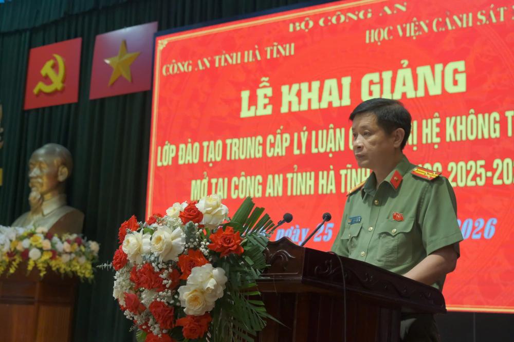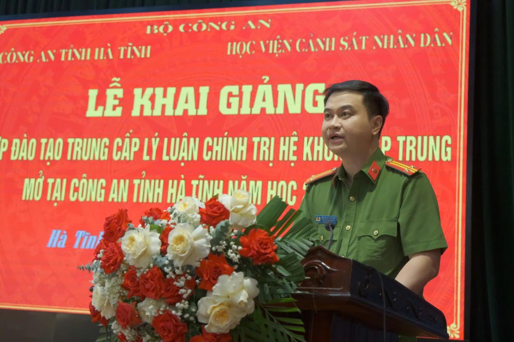 Lớp đào tạo trung cấp lý luận chính trị hệ không tập trung được tổ chức trong thời gian 12 tháng. Đây là lớp học có ý nghĩa quan trọng nhằm nâng cao trình độ lý luận chính trị, bản lĩnh, tư duy và năng lực công tác cho đội ngũ cán bộ, chiến sĩ Công an tỉnh Hà Tĩnh, đáp ứng yêu cầu nhiệm vụ trong tình hình mới.