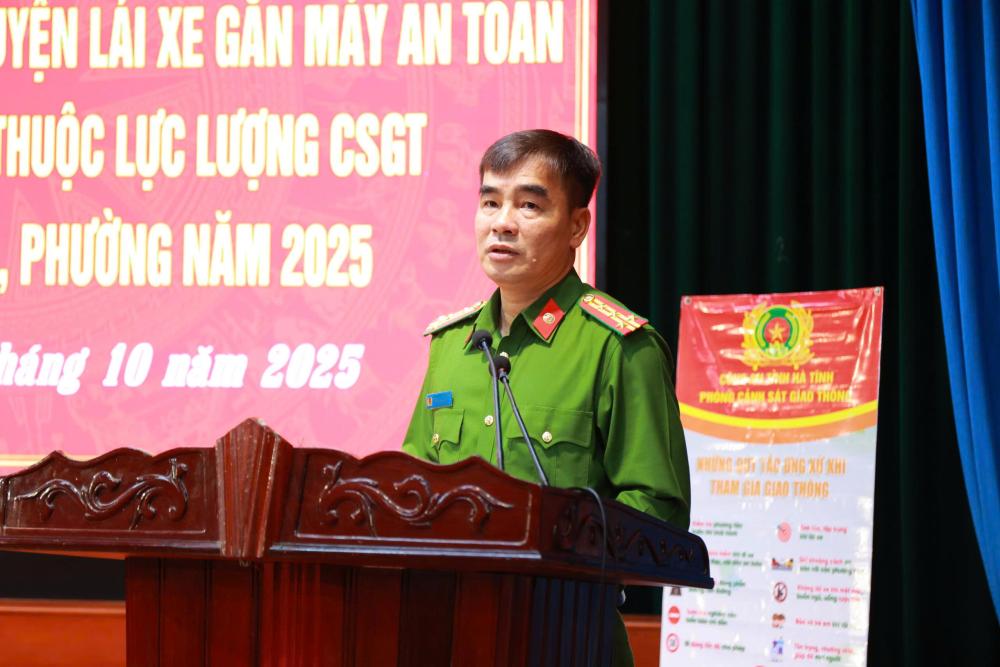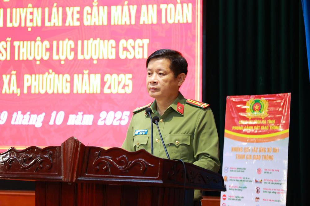 Phát biểu tại buổi khai giảng, đồng chí Đại tá Nguyễn Duy Đông nhấn mạnh: Lớp tập huấn lần này nhằm trang bị cho cán bộ, chiến sĩ những kiến thức, kỹ năng sư phạm và nghiệp vụ cần thiết để tổ chức hướng dẫn kỹ năng lái xe gắn máy an toàn cho học sinh, góp phần nâng cao hiệu quả tuyên truyền, giáo dục pháp luật về trật tự, an toàn giao thông trong nhà trường. Yêu cầu các học viên nâng cao tinh thần trách nhiệm, tham gia đầy đủ các nội dung học tập, chủ động trao đổi, thảo luận để nắm vững chuyên đề được giảng viên trình bày. Sau khi kết thúc lớp học, học viên cần vận dụng hiệu quả kiến thức, kinh nghiệm thực tiễn trong công tác, tham mưu cho cấp ủy, chính quyền và phối hợp với ngành giáo dục triển khai đồng bộ nhiều biện pháp đảm bảo an toàn giao thông cho học sinh trên địa bàn.
