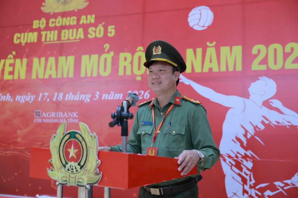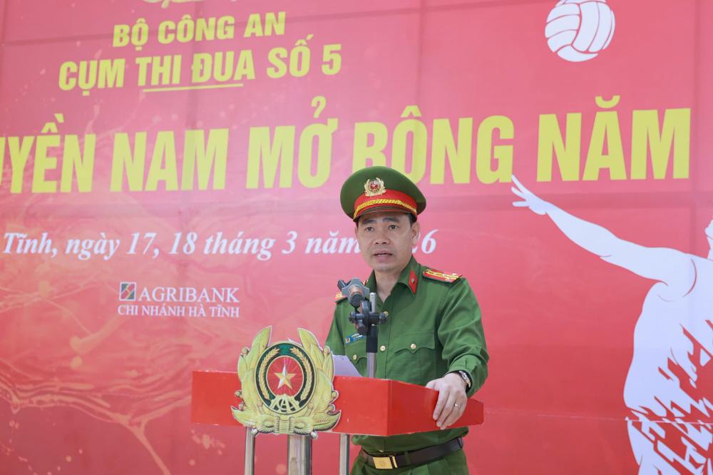 Phát biểu tại lễ khai mạc, đồng chí Đại tá Nguyễn Phi Hải – Phó Giám đốc Công an tỉnh Hà Tĩnh nhấn mạnh, Giải bóng chuyền nam mở rộng Cụm thi đua số 5 là hoạt động thể thao có ý nghĩa thiết thực, góp phần đẩy mạnh phong trào rèn luyện thể dục, thể thao trong lực lượng Công an nhân dân; đồng thời tạo sân chơi lành mạnh, tăng cường giao lưu, đoàn kết, học hỏi kinh nghiệm giữa Công an các đơn vị, địa phương trong Cụm thi đua. Qua đó tiếp tục cổ vũ, động viên cán bộ, chiến sĩ nỗ lực phấn đấu hoàn thành xuất sắc nhiệm vụ bảo đảm an ninh trật tự.