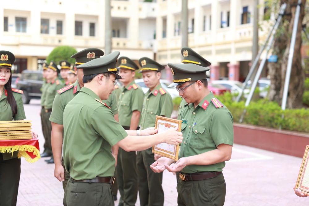 Sau phần tiến hành các nghi lễ chào cờ Tổ quốc theo quy định, đồng chí Thiếu tướng Nguyễn Xuân Thao – Giám đốc Công an tỉnh đã trao Bằng khen, Giấy khen cho các tập thể, cá nhân có thành tích xuất sắc trong quá trình công tác, chiến đấu