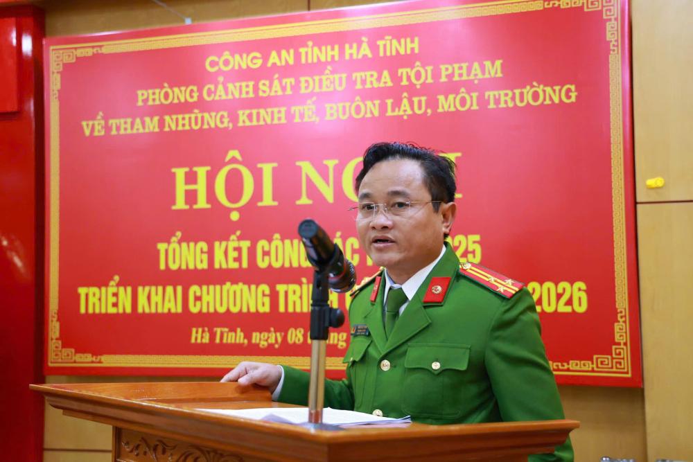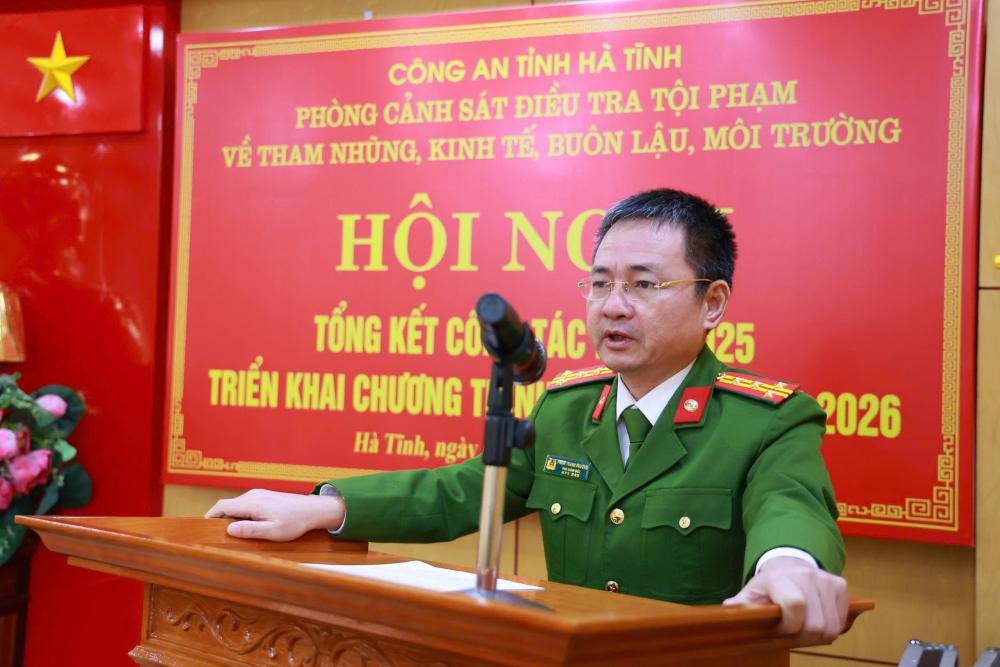 Phát biểu chỉ đạo tại Hội nghị, Đại tá Phạm Thanh Phương, Phó Giám đốc Công an tỉnh đã ghi nhận, biểu dương và chúc mừng những chiến công xuất sắc mà Phòng Cảnh sát kinh tế đạt được trong năm 2025. Đồng chí Phó Giám đốc yêu cầu đơn vị phải tập trung nhận diện, dự báo chính xác các nguy cơ để chủ động phòng ngừa. Thông qua công tác điều tra, xử lý tội phạm, lực lượng Cảnh sát kinh tế phải tích cực tham gia 'kiến tạo', đóng góp nhiều hơn nữa vào sự phát triển kinh tế - xã hội của tỉnh nhà". Mỗi cán bộ chiến sĩ phải không ngừng tự soi, tự sửa, giữ vững đạo đức nghề nghiệp: "Mỗi điều tra viên phải là một chuyên gia về kinh tế, giỏi về pháp luật và tinh thông về nghiệp vụ. Tuyệt đối không để xảy ra sai phạm, tiêu cực, phải bảo vệ cho bằng được sự thượng tôn pháp luật và uy tín của lực lượng Công an Hà Tĩnh"