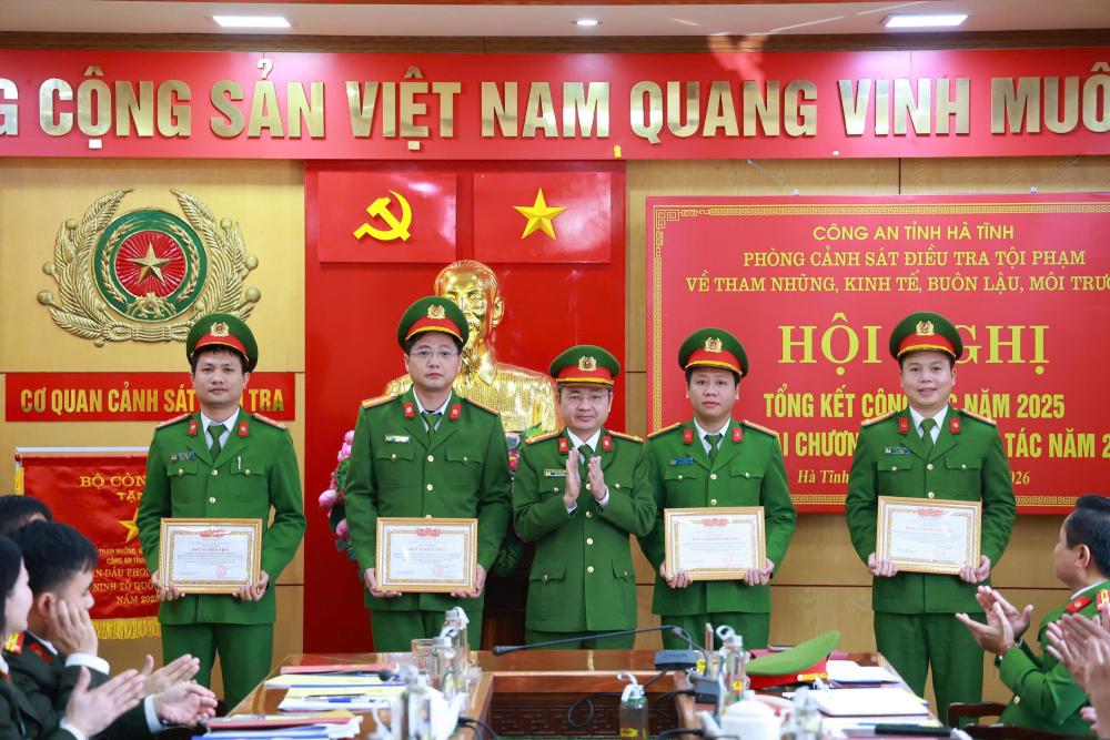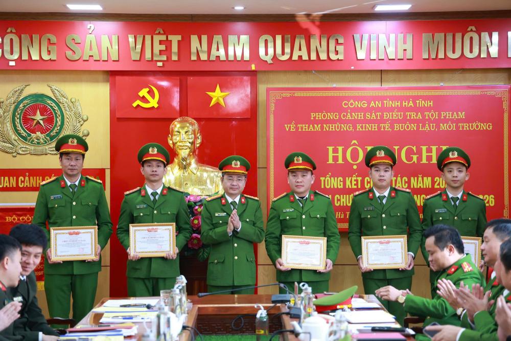 Năm 2025, trong bối cảnh khối lượng công việc và trách nhiệm của lực lượng Cảnh sát kinh tế cấp tỉnh ngày càng nặng nề, Phòng Cảnh sát kinh tế Công an Hà Tĩnh đã chủ động tham mưu cho Đảng ủy, Ban Giám đốc Công an tỉnh ban hành nhiều kế hoạch mang tính chiến lược trong đấu tranh phòng chống tội phạm. Đơn vị đã kịp thời hướng dẫn nghiệp vụ sâu sát cho lực lượng Công an cấp xã, đảm bảo công tác phòng ngừa, đấu tranh tội phạm thực hiện hiệu quả từ cơ sở. Bên cạnh đó, tập trung đấu tranh có hiệu quả nhiều vụ án điểm, tính chất nghiêm trọng đã bị triệt phá như: Tham ô tài sản; buôn lậu vàng; sản xuất, buôn bán hàng giả và mua bán trái phép hóa đơn. Trên mặt trận bảo vệ môi trường, đơn vị đã xử lý quyết liệt các vi phạm về bảo tồn động vật hoang dã và triệt phá các đường dây vận chuyển pháo nổ số lượng lớn, thu giữ nhiều tài nguyên khoáng sản khai thác trái phép. Bên cạnh hoàn thành tốt các mặt công tác chuyên môn, đơn vị còn tập trung làm tốt công tác xây dựng Đảng, xây dựng lực lượng gắn với phong trào thi đua "Vì An ninh Tổ quốc".