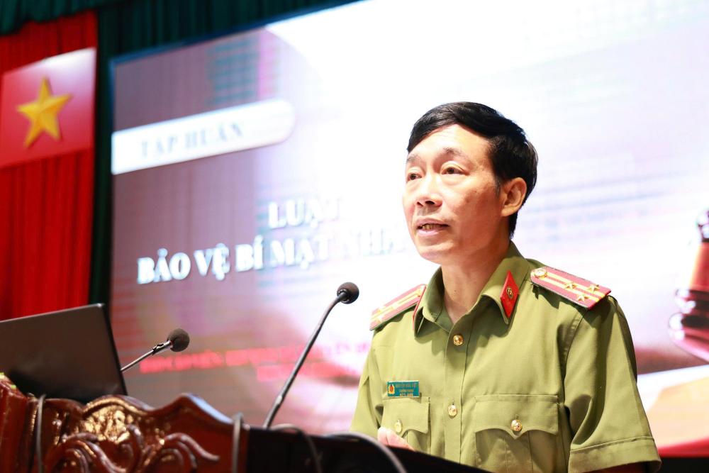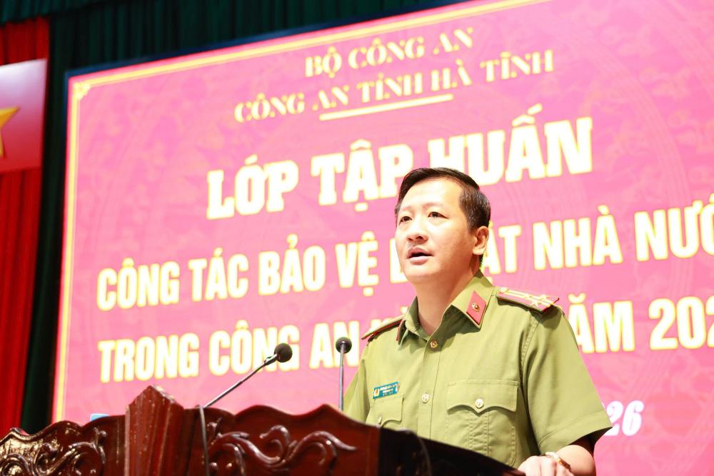 Tham dự và phát biểu chỉ đạo tại lớp tập huấn có đồng chí Thượng tá Nguyễn Quốc Hùng, Phó Giám đốc Công an tỉnh Hà Tĩnh; lãnh đạo các phòng chức năng và 176 cán bộ, chiến sĩ trực tiếp thực hiện công tác bảo vệ bí mật nhà nước ở Công an các đơn vị, địa phương.