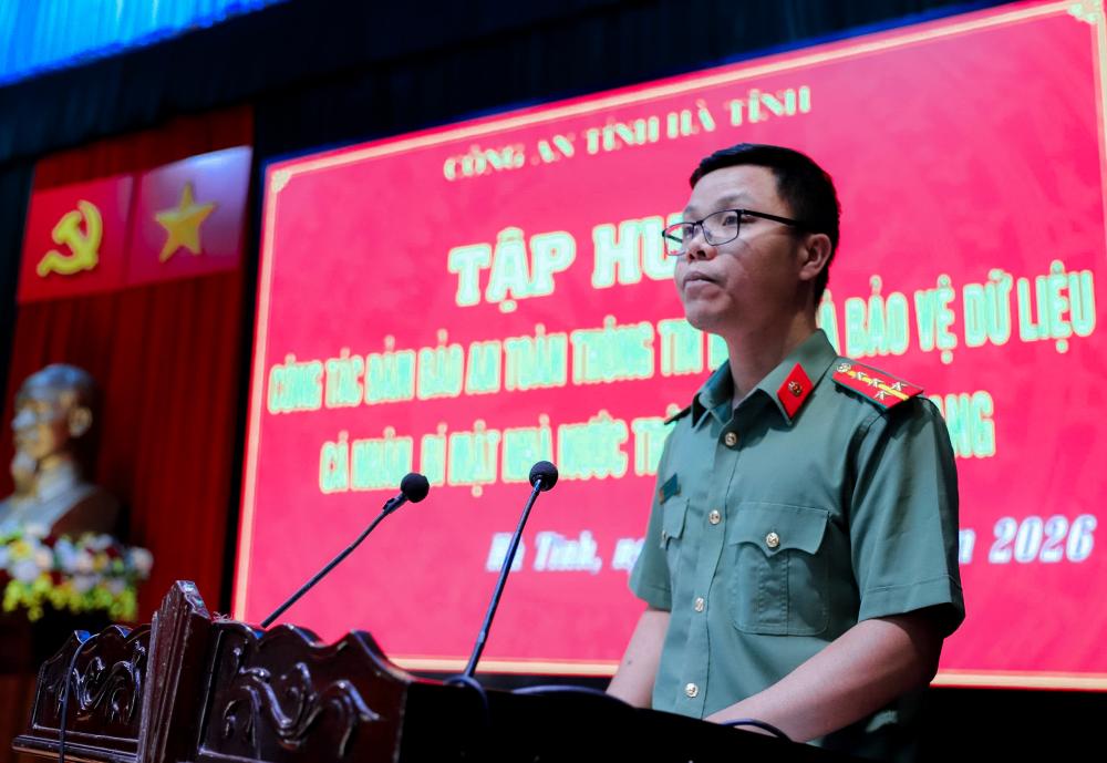 Phát biểu khai mạc hội nghị, đồng chí Thượng tá Nguyễn Trường Diệu, trưởng phòng an ninh mạng và phòng chống tội phạm sử dụng công nghệ cao Công an tỉnh nhấn mạnh: trong những năm qua, Công an tỉnh đã tăng cường chỉ đạo các mặt công tác bảo đảm an toàn, an ninh mạng, bảo vệ bí mật Nhà nước, bảo vệ dữ liệu cá nhân trên địa bàn thông qua các văn bản, kế hoạch, phương án, hoạt động cụ thể; chỉ đạo các đơn vị chức năng, đẩy mạnh hoạt động kiểm tra, đánh giá công tác đảm bảo an toàn, an ninh mạng định kỳ và đột xuất, ghi nhận các mặt tích cực, đồng thời chỉ ra các tồn tại, hạn chế, nguy cơ mất an ninh, an toàn thông tin giúp các đơn vị kịp thời khắc phục. Qua đó, đã tạo sự chuyển biến tích cực trong nhận thức về vị trí, vai trò quan trọng của công tác bảo đảm an ninh mạng tại đơn vị trong lực lượng Công an Hà Tĩnh.