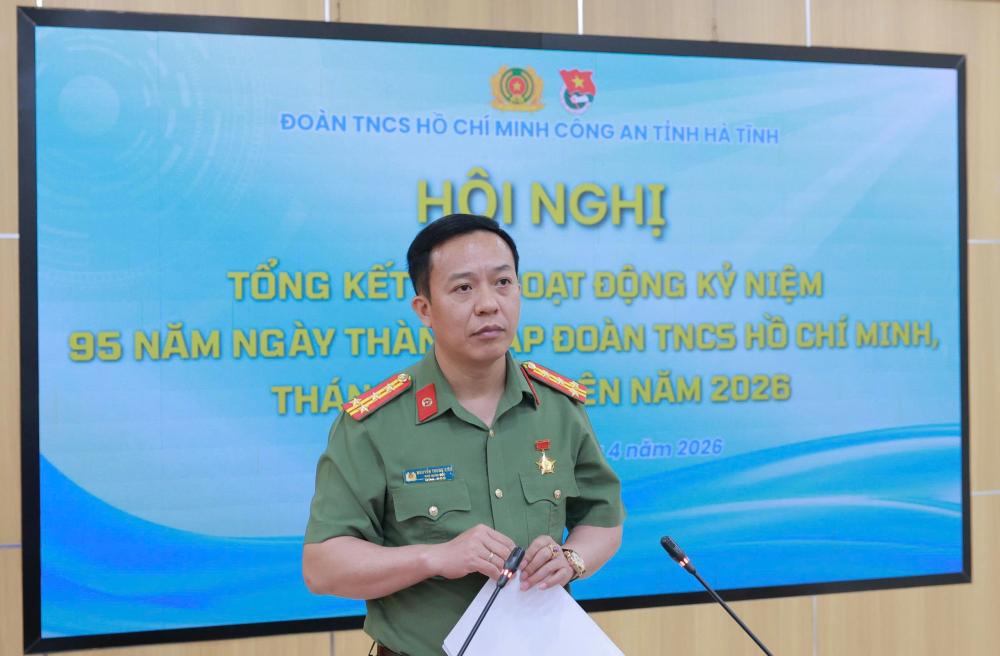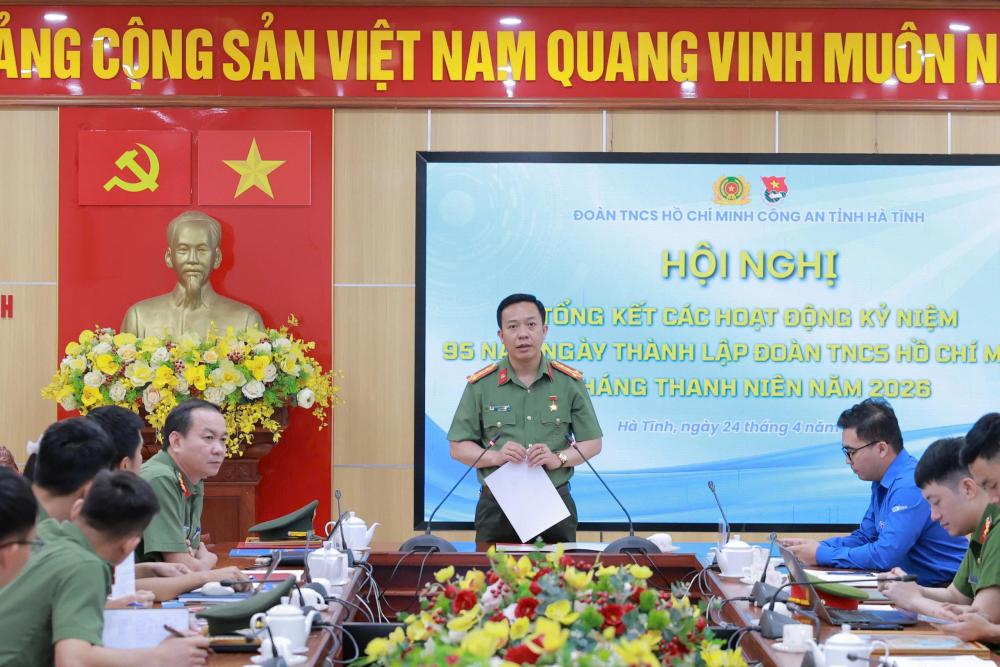 Sáng 24/4/2026, Đoàn Thanh niên Công an tỉnh Hà Tĩnh tổ chức Hội nghị tổng kết các hoạt động kỷ niệm 95 năm Ngày thành lập Đoàn TNCS Hồ Chí Minh, Tháng Thanh niên năm 2026; trao giải Cuộc thi sáng tạo video clip “Tuổi trẻ Công an Hà Tĩnh - Tự hào truyền thống, vững vàng tiến bước” và sinh hoạt chuyên đề kỷ niệm 120 năm Ngày sinh Tổng Bí thư Hà Huy Tập.