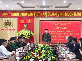 Thực hiện Quyết định số 49 của Chánh Thanh tra Công an tỉnh Hà Tĩnh về thanh tra việc chấp hành các quy định của phấp luật về PCCC tại cơ sở.