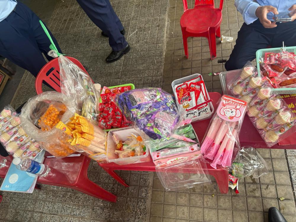 Tại thời điểm kiểm tra đoàn kiểm tra phát hiện các cơ sở kinh doanh đang bày bán nhiều thực phẩm như chân gà gói, xúc xích, kẹo mút, kẹo que, kẹo dẻo được bảo quản đựng trong hộp nhựa, các túi bóng đều không có tên thương nhân chịu trách nhiệm về hàng hoá, không ghi nguồn gốc xuất xứ hàng hoá. Qua kiểm tra các hộ kinh doanh không cung cấp được hợp đồng mua bán, chứng từ chứng nhận và tài liệu liên quan đến số hàng hoá nêu trên để chứng minh nguồn gốc xuất xứ. Đại diện các hộ kinh doanh cho biết do các loại bánh kéo này mẫu mã phong phú đa dạng lại có giá thành rẻ phù hợp với nhu cầu của học sinh nên đã nhập về để bán kiếm lời.