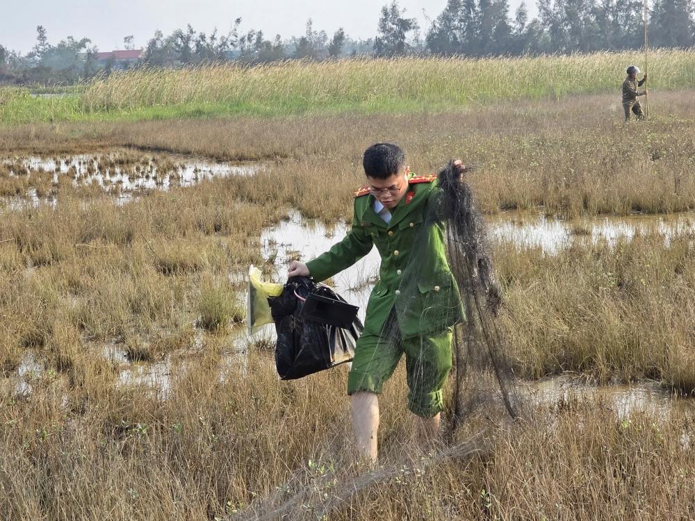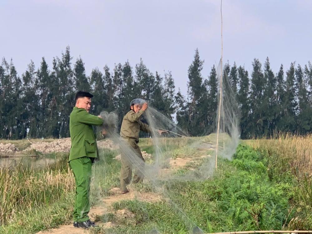 Trong quá trình kiểm tra tại khu vực đê thuộc thôn Thượng Nguyên, tổ công tác đã phát hiện hơn 40 chim cò giả bằng xốp và hơn 3.000m lưới được các đối tượng sử dụng để bẫy, đánh bắt chim hoang dã. Đây là hình thức săn bắt trái phép, gây ảnh hưởng nghiêm trọng đến quần thể chim di cư và môi trường sinh thái.