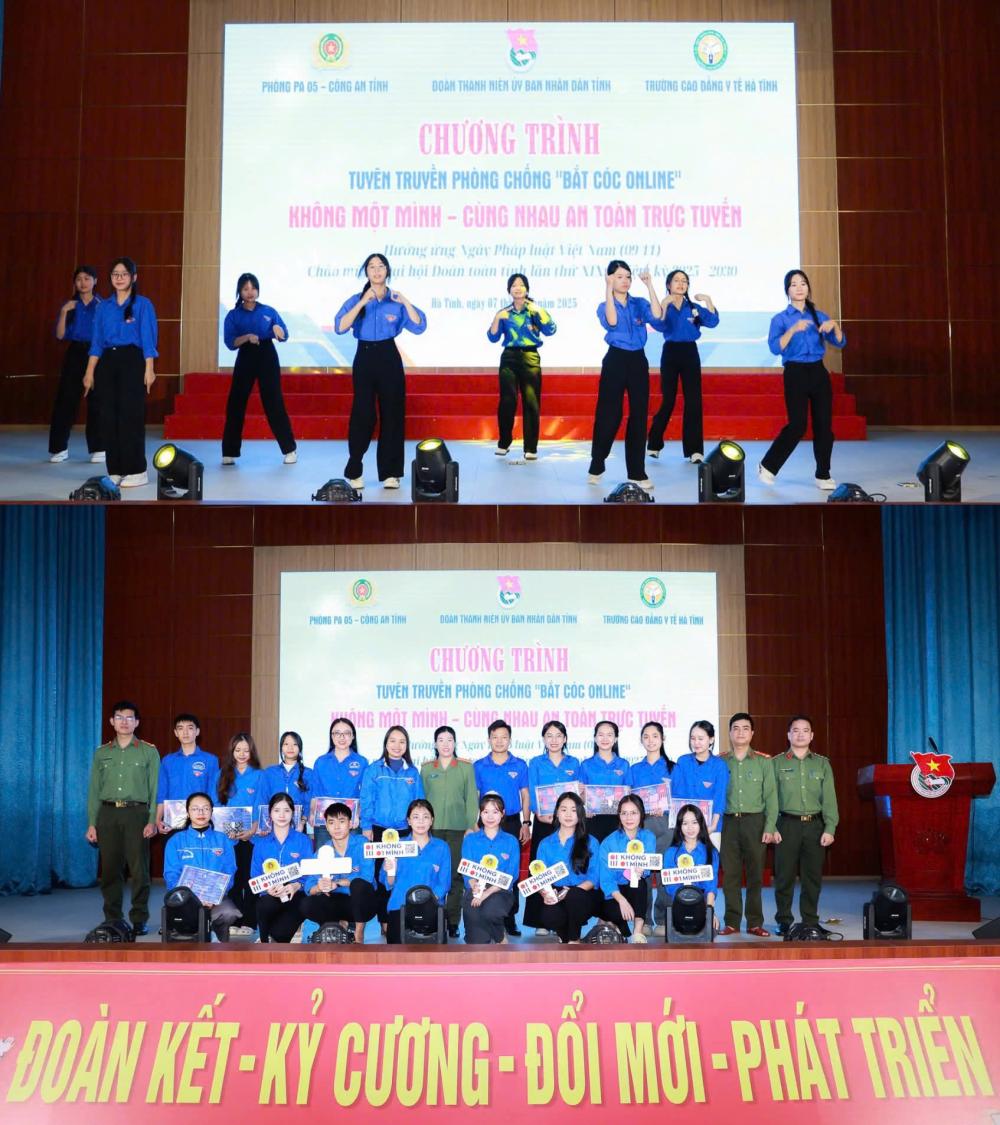 Tham dự chương trình có đồng chí Phan Thị Quỳnh Hương, Ủy viên Ban Thường vụ Tỉnh đoàn, Bí thư Đoàn UBND tỉnh; đồng chí Thiếu tá Trần Thùy Dung, Phó Đội trưởng Phòng An ninh mạng và phòng chống tội phạm sử dụng công nghệ cao Công an tỉnh; cùng cán bộ, giáo viên và gần 300 đoàn viên, thanh niên Trường Cao đẳng Y tế Hà Tĩnh.