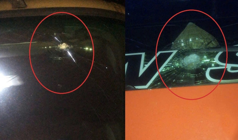 Cùng thời điểm, hai phương tiện khác cũng phải dừng lại vì kính chắn gió bị hư hỏng với dấu hiệu tương tự.