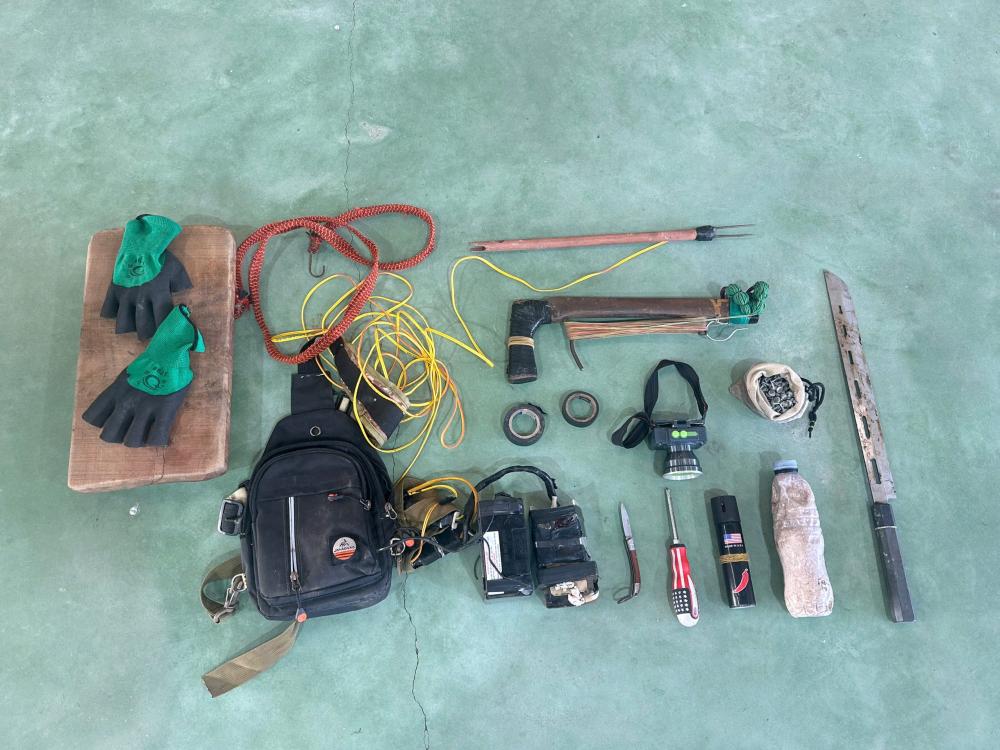 Tại hiện trường, lực lượng chức năng thu giữ 06 con chó, tổng khối lượng 78,5kg, trị giá khoảng 6.300.000 đồng; 02 xe mô tô cùng nhiều công cụ, phương tiện phạm tội nguy hiểm gồm 01 súng bắn điện tự chế, 02 con dao, 01 bình xịt hơi cay và nhiều vật dụng khác.