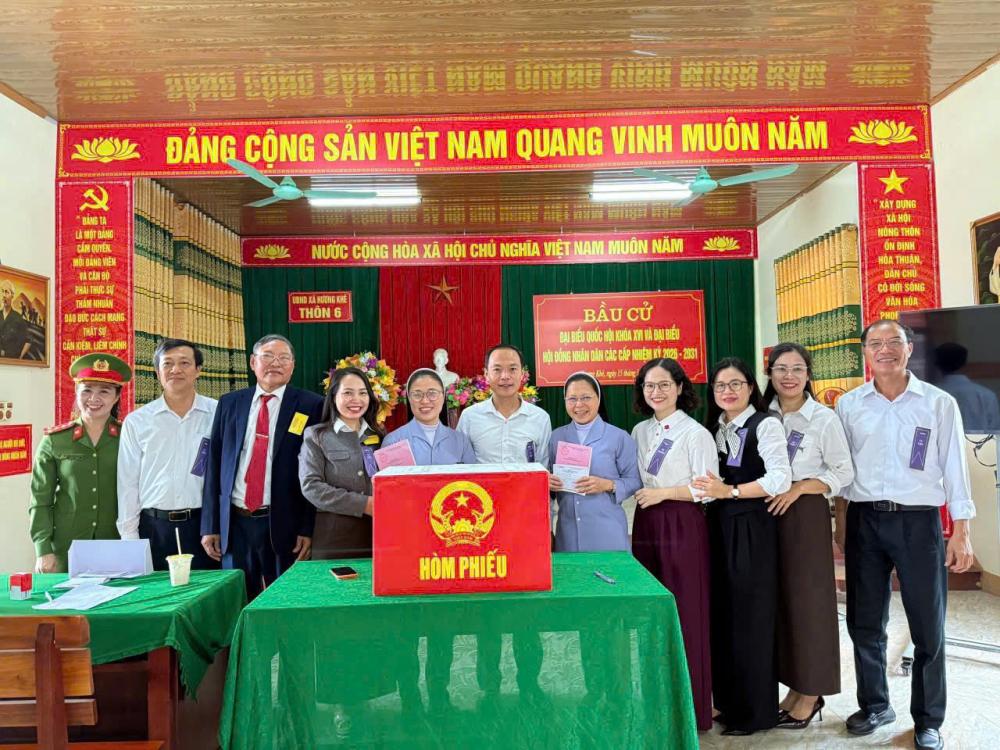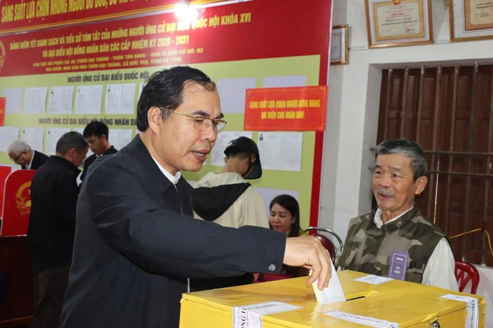 Không chỉ gương mẫu thực hiện quyền công dân, nhiều linh mục, chức việc còn tích cực tuyên truyền, vận động bà con giáo dân tham gia bầu cử đầy đủ, đúng quy định. Tại các giáo xứ, giáo họ, bà con giáo dân phấn khởi đến khu vực bỏ phiếu trong không khí trang nghiêm, dân chủ. Đối với địa bàn phường Hoành Sơn, khu vực có đông bà con giáo dân sinh sống, cấp uỷ, chính quyền đã phối hợp Công an tỉnh triển khai đồng bộ nhiều biện pháp công tác, tăng cường tuyên truyền, vận động, tranh thủ các chức sắc, chức việc, người có uy tín trong cộng đồng tôn giáo, đến nay tỷ lệ cử tri tại Hoành Sơn đi bỏ phiếu đã đạt 97,98%. Tính đến 15h30, đã có 98,67% cử tri trên toàn tỉnh đi bỏ phiếu, trong đó có 21 xã, phường đã đạt 100%, thể hiện tinh thần trách nhiệm và sự đồng thuận cao của Nhân dân.