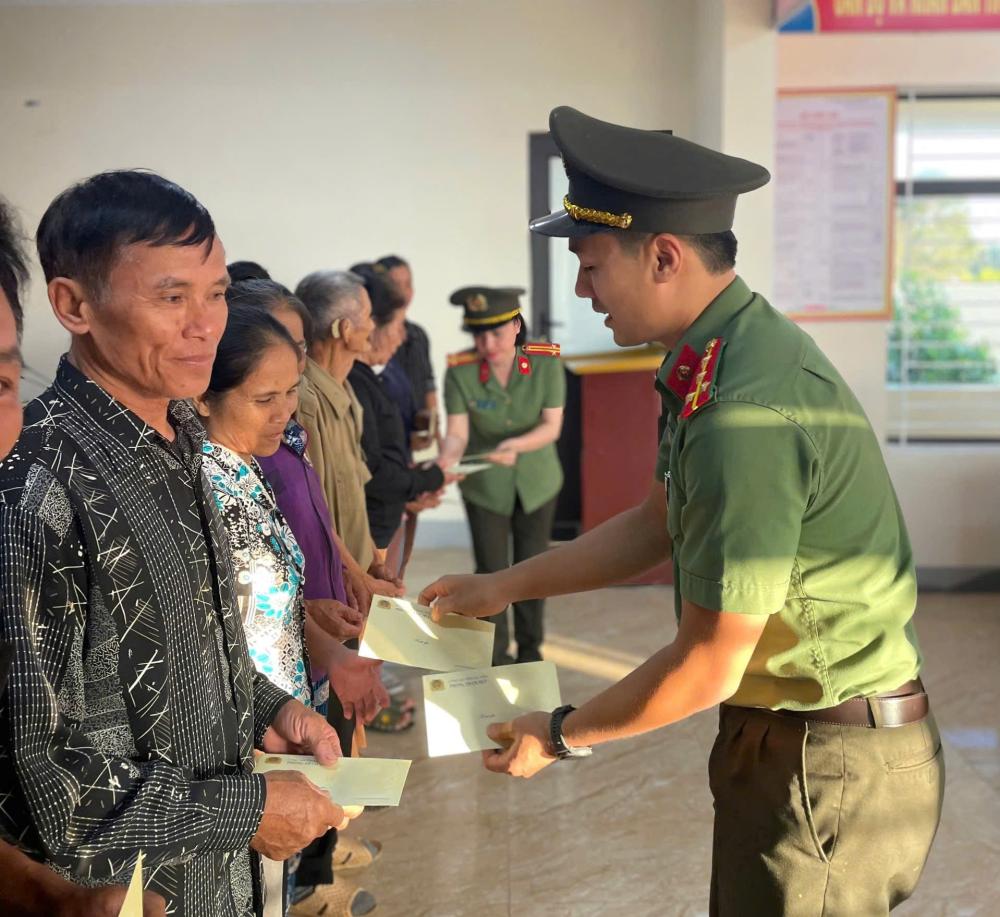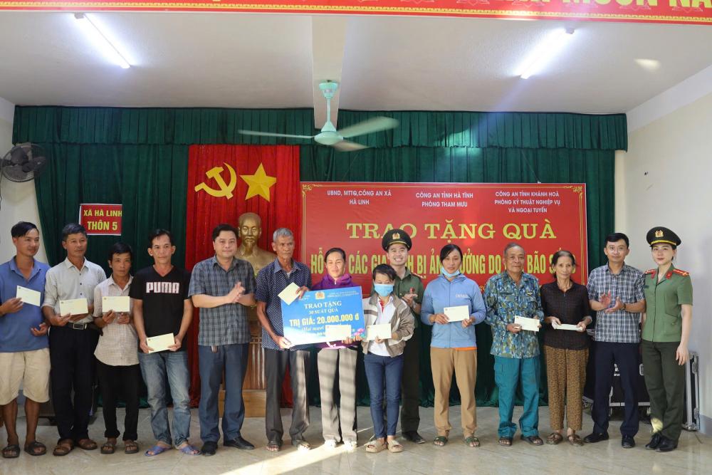 Tại buổi trao quà, đại diện BCH Hội Phụ nữ cơ sở & BCH Chi đoàn Phòng Tham mưu - Công an tỉnh Hà Tĩnh đã tận tay gửi đến người dân những phần quà thiết thực kèm theo lời thăm hỏi, động viên chân thành đến từ các cán bộ, chiến sĩ. Đồng chí Đại uý Nguyễn Thị Lệ Huyền - cán bộ Phòng Tham mưu, Công an tỉnh Hà Tĩnh chia sẻ: “Là những cán bộ, chiến sĩ trong lực lượng Công an nhân dân, chúng tôi luôn thấu hiểu và chia sẻ với những mất mát, thiệt hại mà người dân phải gánh chịu sau thiên tai. Mong rằng những phần quà nhỏ bé này sẽ phần nào giúp bà con ổn định cuộc sống, sớm khắc phục hậu quả để vươn lên trong khó khăn.”.