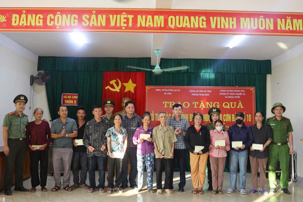 Xã Hà Linh là một trong những địa bàn tại Hà Tĩnh bị ảnh hưởng nặng nề khi Bão số 10 Bualoi đổ bộ vừa qua. Nhiều hộ dân bị ngập sâu, tài sản, nhà cửa bị hư hỏng, đời sống gặp rất nhiều khó khăn. Với tinh thần “Giúp Nhân dân là mệnh lệnh từ trái tim”, Phòng Tham mưu - Công an tỉnh Hà Tĩnh đã trực tiếp về xã Hà Linh, Hà Tĩnh trao tận tay 30 suất quà cho các hộ dân bị thiệt hại nặng nề nhất, tổng trị giá quà tặng lên đến 20 triệu đồng. Mỗi suất quà tuy giá trị không lớn nhưng là những món quà đầy nghĩa tình, thể hiện tinh thần đoàn kết, sẻ chia của lực lượng Công an nhân dân đối với người dâ.
