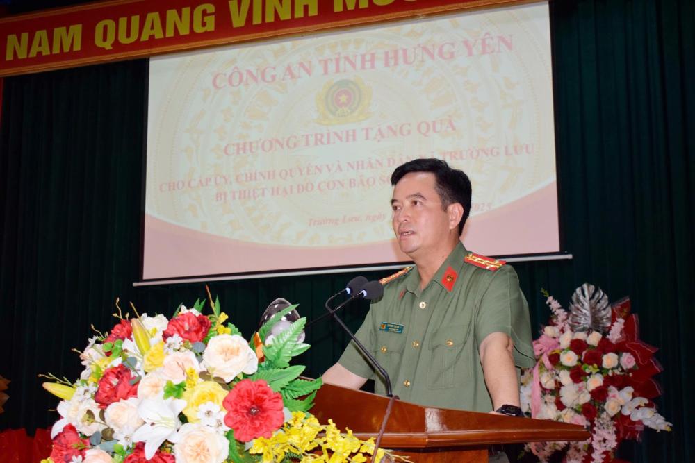 Phát biểu tại chương trình, Đại tá Nguyễn Thành Sơn – Phó Giám đốc Công an tỉnh Hưng Yên chia sẻ: “Với tinh thần tương thân tương ái, đoàn kết, chúng tôi mong muốn những phần quà nhỏ bé này sẽ phần nào giúp bà con vơi bớt khó khăn, sớm ổn định cuộc sống, khôi phục sinh kế sau bão”.