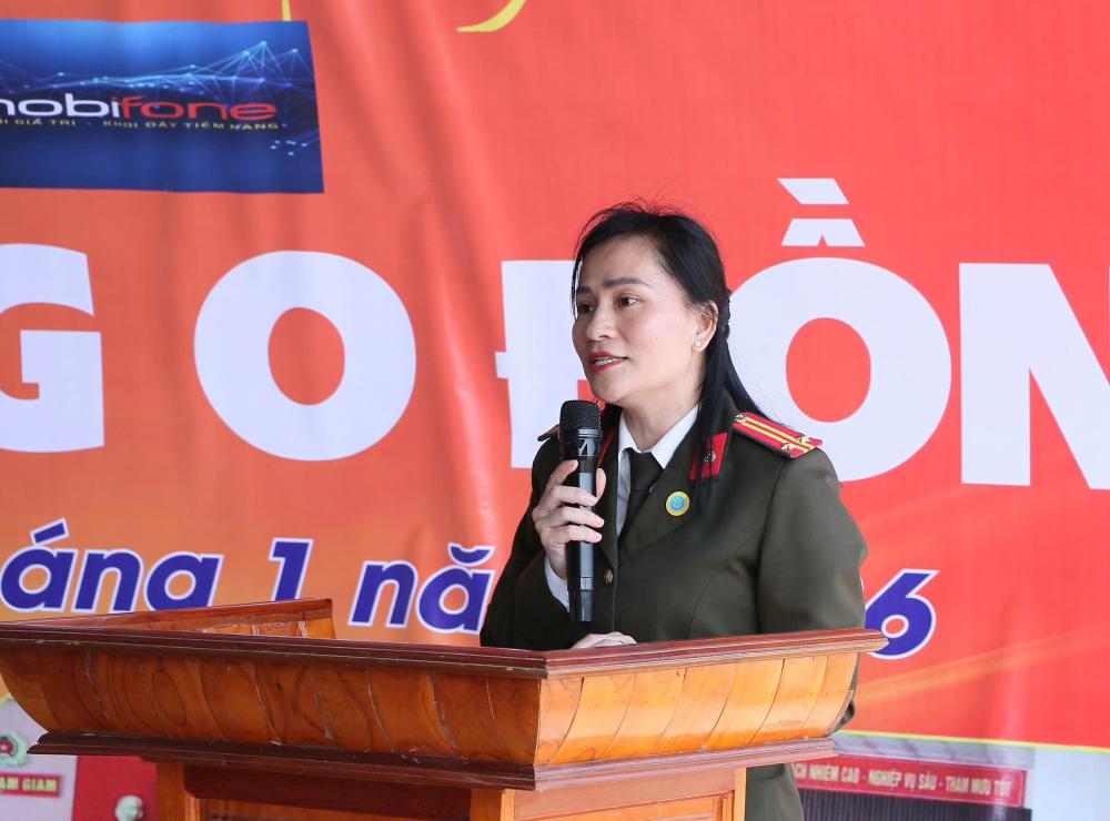 Trung tá Lê Thị Hồng Loan - Trưởng Ban phụ nữ Công an tỉnh chia sẻ tại chương trình
