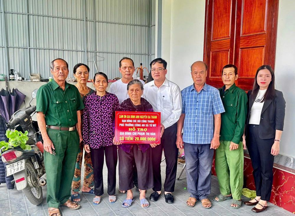Trước tình cảnh đó Công an xã Tứ Mỹ đã chủ động đứng ra kêu gọi, kết nối các nhà hảo tâm, cộng đồng mạng và những tấm lòng thiện nguyện cùng chung sức hỗ trợ gia đình. Sau một thời gian kêu gọi, đến nay (ngày 08/12), tổng số tiền gửi về hỗ trợ gia đình đã vượt hơn 200 triệu đồng. Chiều ngày 8/12 Công an xã Tứ Mỹ phối hợp Fanpage Dân Hương Sơn, Fanpage Tứ Mỹ 24/7, cấp ủy, chính quyền địa phương và Ban Công tác Mặt trận thôn Tân Hồ tổ chức trao số tiền hỗ trợ, góp phần giúp gia đình có thêm điều kiện lo chi phí điều trị.
