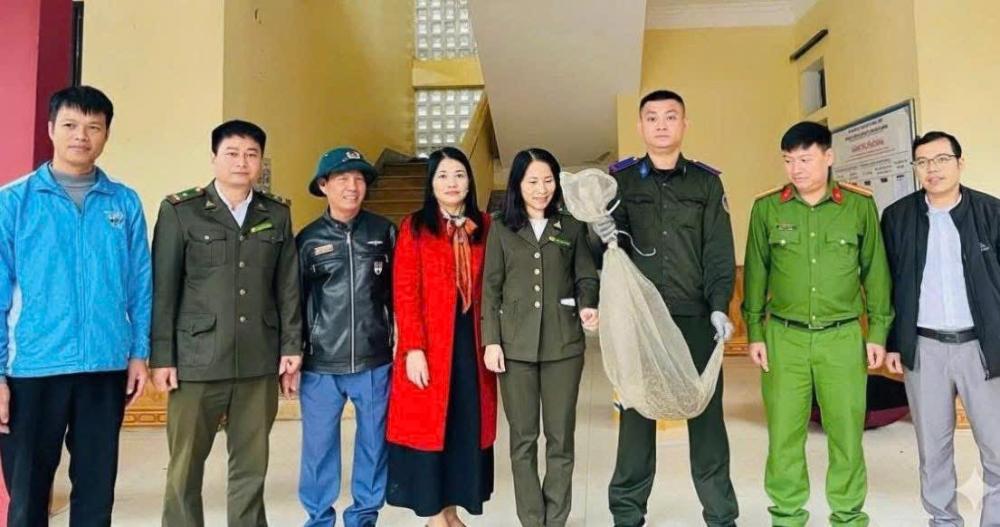 Lực lượng Công an đã phối hợp Đội Kiểm lâm cơ động và PCCCR bàn giao cá thể này cho Vườn Quốc gia Vũ Quang để cứu hộ và thả về.