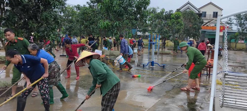 ​Bên cạnh công tác dọn dẹp, lực lượng Công an xãcòn phối hợp vận động các tổ chức, mạnh thường quânquyên góp nhu yếu phẩm, quần áo, nước sạch, hỗ trợcác hộ bị thiệt hại nặng, giúp người dân sớm ổn địnhcuộc sống sau lũ.