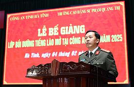 Chiều 04/02/2026, Công an tỉnh Hà Tĩnh tổ chức Lễ bế giảng lớp bồi dưỡng tiếng Lào năm 2025. Đây là dấu mốc quan trọng, khẳng định tinh thần học tập, rèn luyện không ngừng của cán bộ, chiến sĩ, đáp ứng yêu cầu nhiệm vụ trong tình hình mới.
