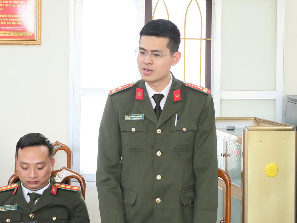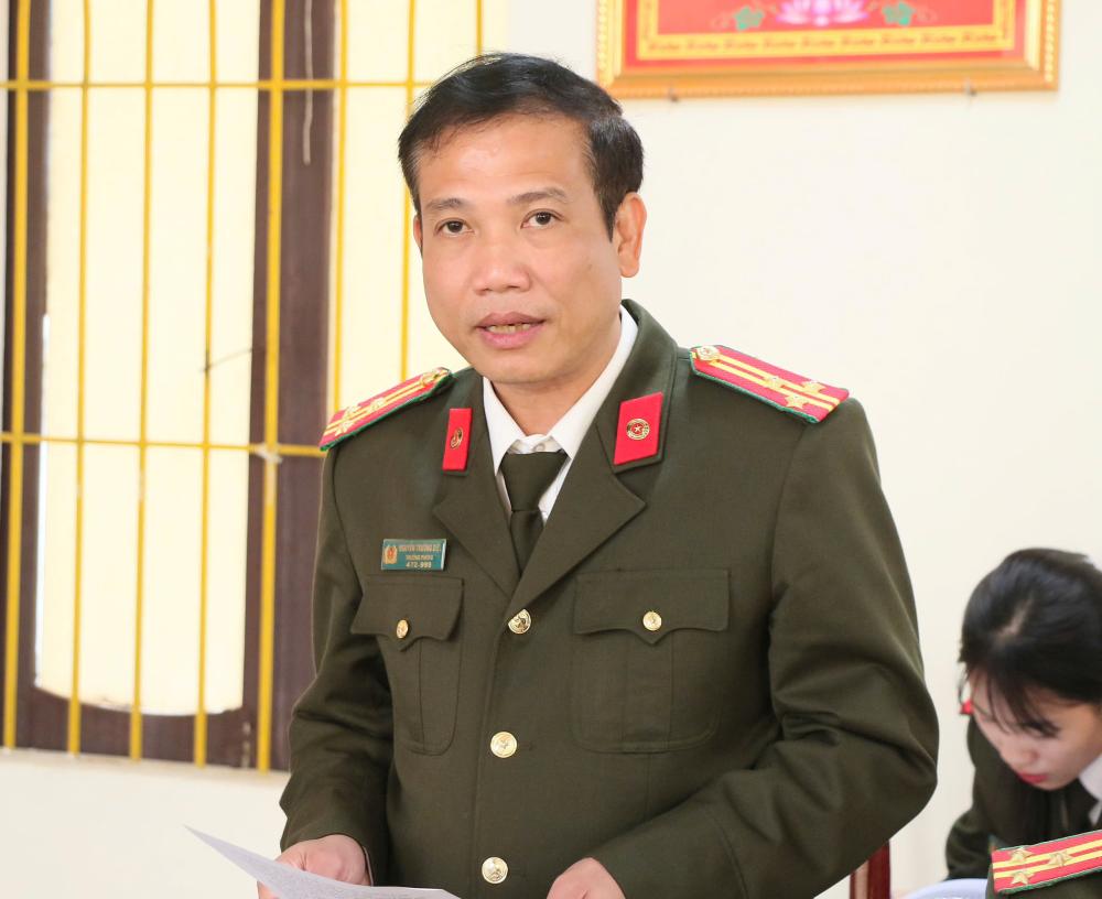 Thượng tá Nguyễn Trường Diệu, Trưởng Phòng An ninh mạng và phòng, chống tội phạm sử dụng công nghệ cao Công an tỉnh phát biểu tại hội nghị