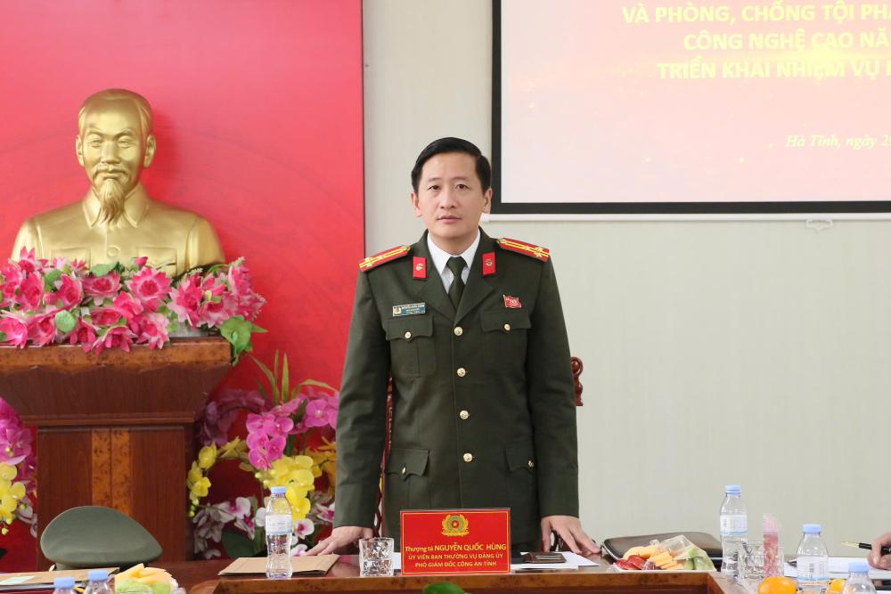 Thượng tá Nguyễn Quốc Hùng, Phó Giám đốc Công an tỉnh, ghi nhận, biểu dương những nỗ lực, kết quả toàn diện mà Phòng An ninh mạng và phòng, chống tội phạm sử dụng công nghệ cao đã đạt được trong năm 2025