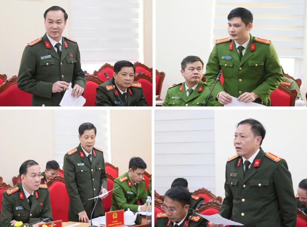Đại tá Nguyễn Duy Đông, Phó Giám đốc Công an tỉnh và Đồng chí Đại tá Phạm Thanh Phương, Phó Giám đốc Công an tỉnh, biểu dương tinh thần trách nhiệm, nỗ lực và những kết quả nổi bật mà Công an các đơn vị đã đạt được trong thời gian qua