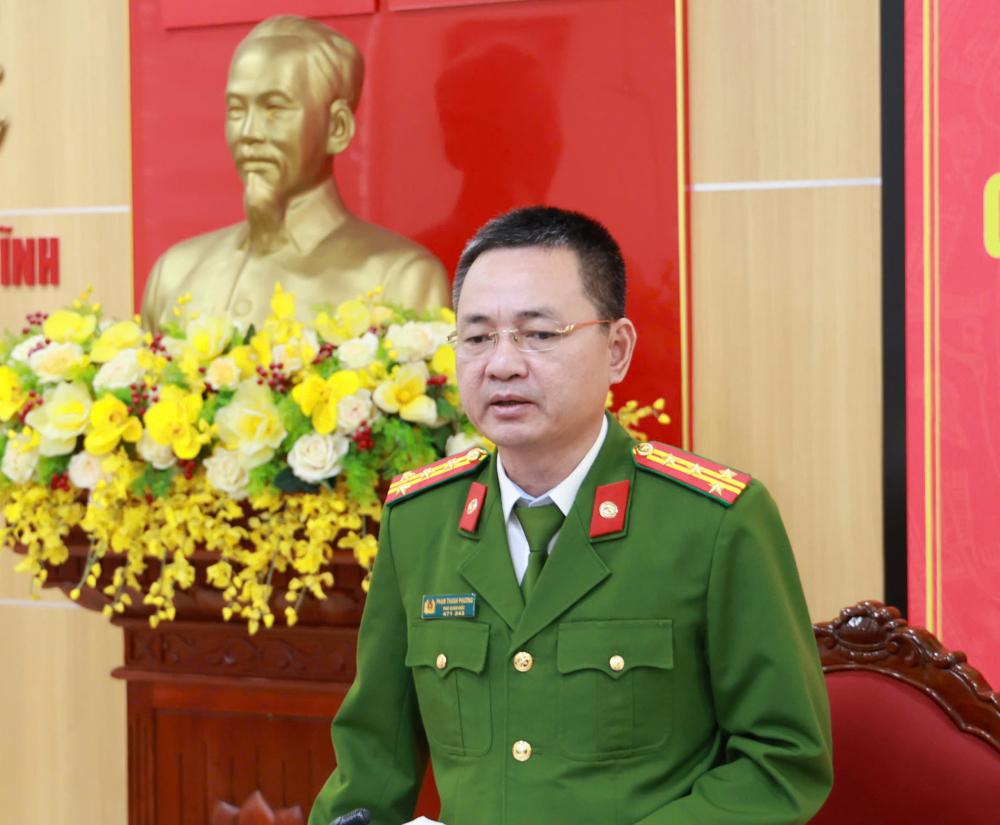 Đồng chí Đại tá Phạm Thanh Phương, Phó Giám đốc Công an tỉnh, biểu dương tinh thần trách nhiệm, nỗ lực và những kết quả nổi bật mà Công an các đơn vị đã đạt được trong thời gian qua