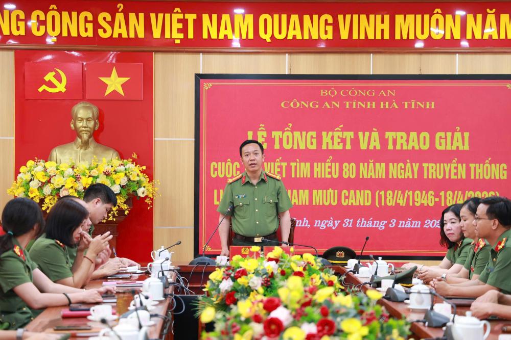 Phát biểu tại buổi lễ trao thưởng, Đại tá Nguyễn Trung Kiên, Phó Bí thư Đảng ủy, Phó Giám đốc Công an tỉnh ghi nhận và biểu dương tinh thần trách nhiệm, sự tâm huyết, sáng tạo của các tập thể, cá nhân tham gia cuộc thi; khẳng định những kết quả đạt được không chỉ là thành tích trong một cuộc thi mà còn thể hiện nhận thức sâu sắc, niềm tự hào và ý thức trách nhiệm của cán bộ, chiến sĩ đối với truyền thống vẻ vang của lực lượng Tham mưu Công an nhân dân. Đồng chí Phó Giám đốc Công an tỉnh đề nghị các đơn vị trong thời gian tới tiếp tục đẩy mạnh công tác giáo dục chính trị, tư tưởng, tuyên truyền truyền thống; gắn việc học tập, tìm hiểu lịch sử với thực hiện nhiệm vụ chính trị được giao; không ngừng nâng cao chất lượng, hiệu quả công tác tham mưu, phục vụ đắc lực công tác lãnh đạo, chỉ huy trong bảo đảm an ninh, trật tự trên địa bàn. Đồng thời nhấn mạnh mỗi cán bộ, chiến sĩ cần tiếp tục phát huy tinh thần chủ động, sáng tạo, nêu cao trách nhiệm, xây dựng lực lượng tham mưu ngày càng chính quy, tinh nhuệ, hiện đại, đáp ứng yêu cầu nhiệm vụ trong tình hình mới.