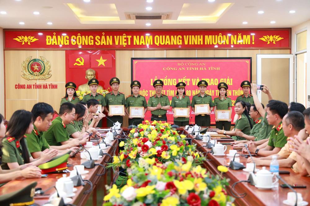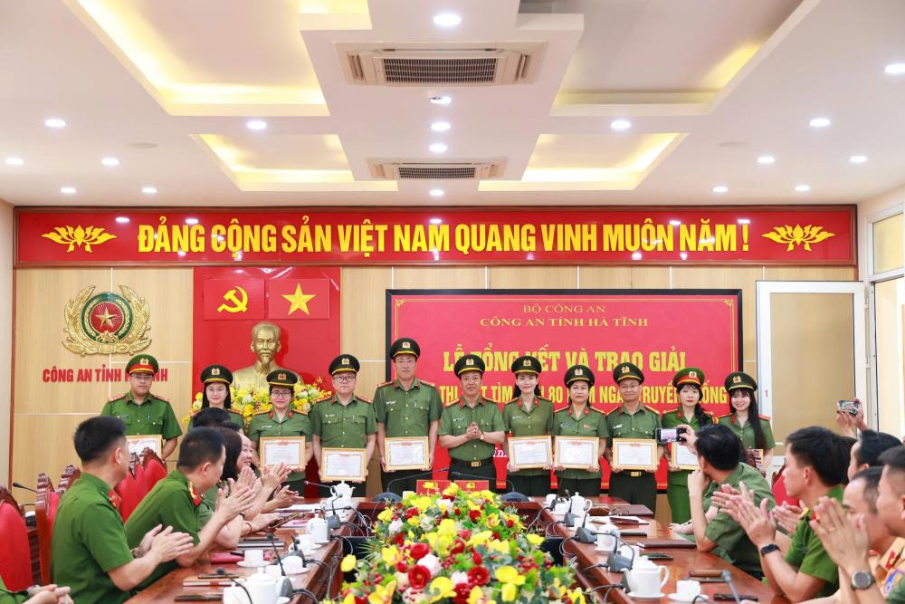 Tại Công an Hà Tĩnh, Ban Tổ chức đã trao 14 Giải cho các tập thể và cá nhân đạt thành tích cao trong Cuộc thi. Bên cạnh đó, Ban Tổ chức cũng đã trao 6 Giấy khen của Giám đốc Công an tỉnh cho các đơn vị có thành tích xuất sắc trong công tác tham mưu, tổ chức cuộc thi.