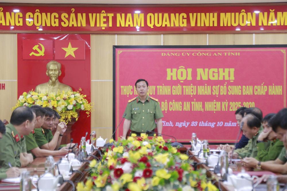 Tại các hội nghị, với tinh thần nghiêm túc, dân chủ, khách quan, đoàn kết và thống nhất cao, tập thể Ban Chấp hành và đội ngũ cán bộ chủ chốt Công an tỉnh đã tiến hành các bước theo đúng quy trình để giới thiệu đồng chí Nguyễn Vinh Cảnh, Bí thư Đảng ủy, Giám thị Trại Tạm giam, tham gia Ban Chấp hành Đảng bộ Công an tỉnh Hà Tĩnh, nhiệm kỳ 2025 - 2030.