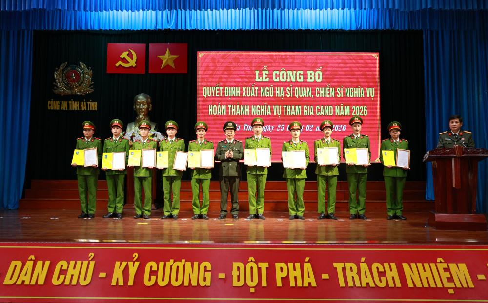 Nhân dịp đầu Xuân Bính Ngọ 2026, lãnh đạo Công an tỉnh chúc mừng 134 hạ sĩ quan, chiến sĩ hoàn thành nghĩa vụ tham gia Công an nhân dân; chúc các đồng chí mạnh khỏe, hạnh phúc, tiếp tục phát huy truyền thống, đóng góp tích cực cho địa phương, xã hội.