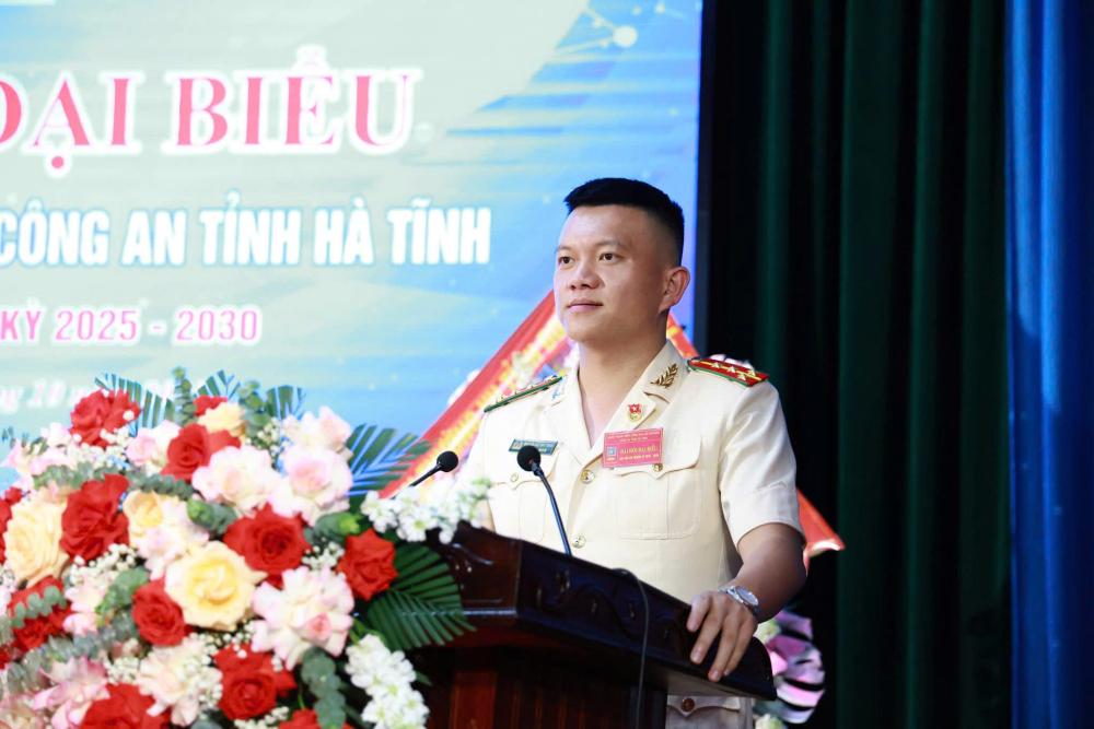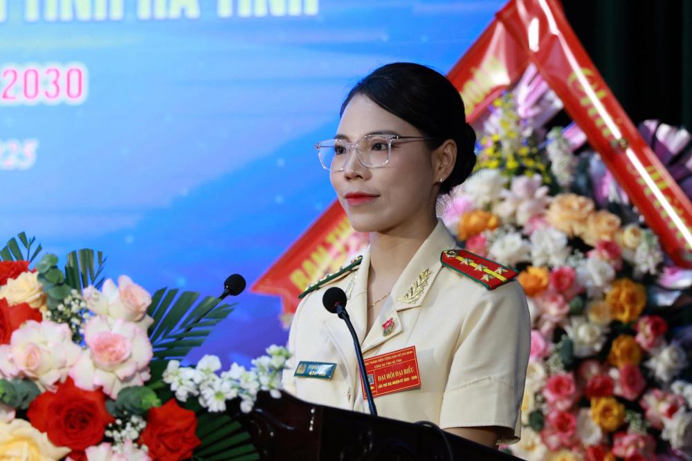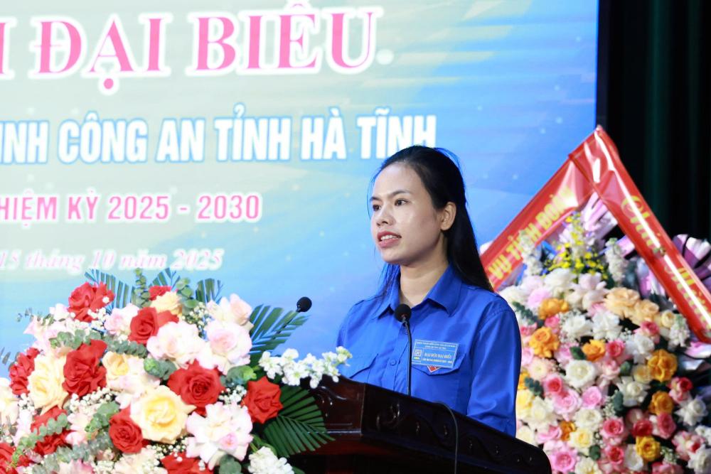 Đồng chí Nguyễn Ny Hương, Bí thư Tỉnh đoàn cũng khẳng định, nhiệm kỳ qua thực hiện Nghị quyết Đại hội, Đoàn Thanh niên Công an tỉnh đã góp phần xây dựng và củng cố hình ảnh người Công an Nhân dân sáng đẹp trong lòng dân. Hòa nhịp cùng các phong trào thi đua sôi nổi của tuổi trẻ tỉnh nhà, tuổi trẻ Công an tỉnh đã phát huy tinh thần xung kích cách mạng, bản lĩnh, trí tuệ trên các mặt công tác Công an. Đó là lực lượng đoàn viên, thanh niên Công an Hà Tĩnh đã ghi lại dấu ấn tốt đẹp trên nhiều lĩnh vực. Đó là hình ảnh về người chiến sỹ công an dầm mình trong mưa bão, lũ lụt, không quản ngại hiểm nguy, gian khổ để giúp đỡ nhân dân; là những ngày về cơ sở hỗ trợ các địa phương xây dựng nông thôn mới, đô thị văn minh, những “Ngày cuối tuần làm công an xã”. Đó là tinh thần nhiệt huyết, trách nhiệm, xung kích của thanh niên Công an trong thực hiện nhiệm vụ chuyên môn, trấn áp tội phạm, mang lại cuộc sống bình yên cho nhân dân. Đặc biệt, tuổi trẻ Công an tỉnh đã khẳng định vai trò xung kích, tiên phong trong tham gia chuyển đổi số; trực tiếp góp phần triển khai hiệu quả Đề án 06 của Chính phủ về phát triển ứng dụng dữ liệu về dân cư, định danh và xác thực điện tử phục vụ chuyển đổi số quốc gia; Bên cạnh đó, vai trò, trách nhiệm của thanh niên Công an trong tham gia củng cố hệ thống chính trị và xây dựng phong trào “Toàn dân bảo vệ an ninh Tổ quốc. Những kết quả đó đã góp phần tô thắm truyền thống vẻ vang của lực lượng Công an Nhân dân và của Đoàn TNCS Hồ Chí Minh.