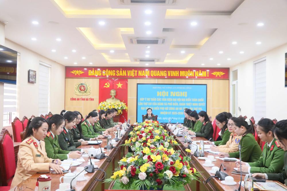 Phát biểu tại Hội nghị, Thượng tá Nguyễn Quốc Hùng – Phó Giám đốc Công an tỉnh ghi nhận và biểu dương những nỗ lực của Ban Phụ nữ Công an tỉnh trong thời gian qua, đồng thời nhấn mạnh: Hoạt động Hội và phong trào phụ nữ Công an Hà Tĩnh đã thực sự đi vào chiều sâu, gắn chặt với nhiệm vụ chính trị của đơn tạo của phụ nữ Công an đã góp phần xây dựng hình ảnh đẹp về người chiến sĩ Công an nhân dân nhân văn, trách nhiệm .Đồng chí đề nghị trong thời gian tới, Ban Phụ nữ tiếp tục phát huy vai trò nòng cốt trong công tác giáo dục chính trị tư tưởng, chăm lo đời sống tinh thần cho hội viên; chủ động tham mưu, đề xuất những hoạt động thiết thực, gắn công tác Hội với nhiệm vụ chuyên môn, xây dựng lực lượng Công an Hà Tĩnh ngày càng vững mạnh. Hội nghị cũng đã thảo luận, quán triệt Nghị quyết Đại hội Phụ nữ Công an Hà Tĩnh lần thứ VIII, nhiệm kỳ 2025–2030 và góp ý dự thảo các văn kiện Đại hội Phụ nữ toàn quốc lần thứ XIV. Không khí hội nghị diễn ra sôi nổi, đoàn kết và đầy cảm hứng, thể hiện quyết tâm của phụ nữ Công an Hà Tĩnh tiếp tục phát huy vai trò tiên phong, bản lĩnh, trí tuệ và nhân văn trong kỷ nguyên mới.