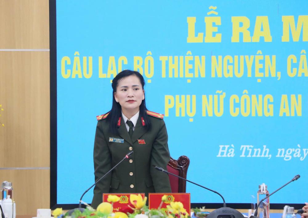 Trung tá Lê Thị Hồng Loan - Trưởng Ban Phụ nữ Công an tỉnh phát biểu