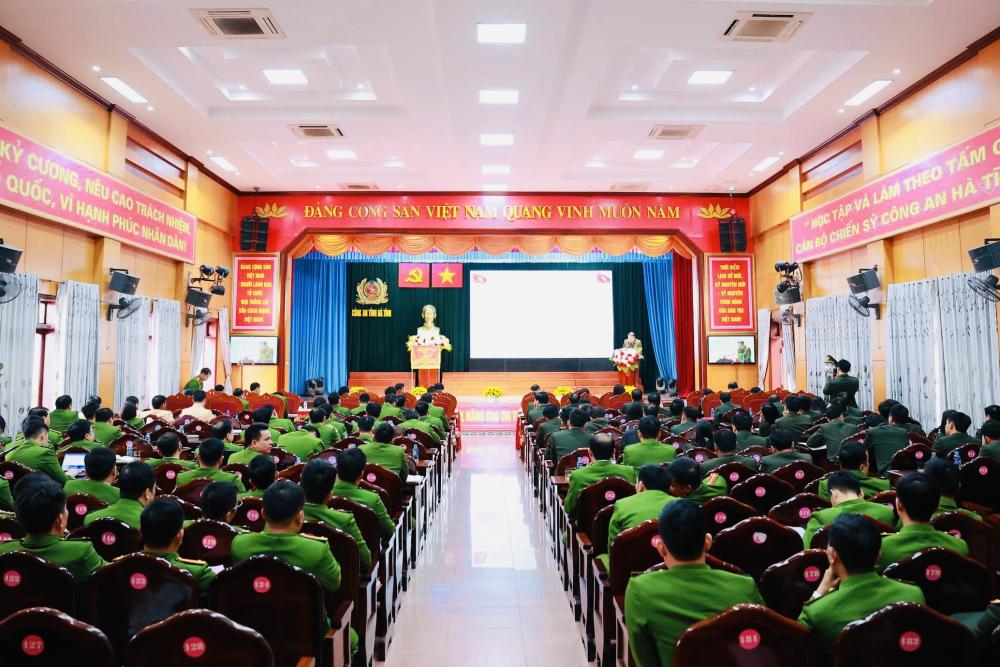 Tham dự hội nghị có các đồng chí trong Ban Giám đốc Công an tỉnh, đại diện lãnh đạo các phòng chức năng, Công an các xã, phường, đồn Công an KKT Vũng Áng. Đồng chí Thiếu tướng Nguyễn Xuân Thao - Ủy viên Ban Thường vụ Tỉnh ủy, Bí thư Đảng ủy, Giám đốc Công an tỉnh chủ trì Hội nghị.