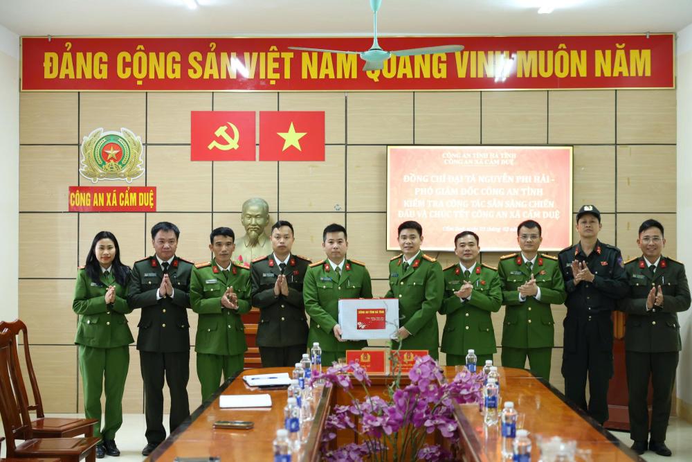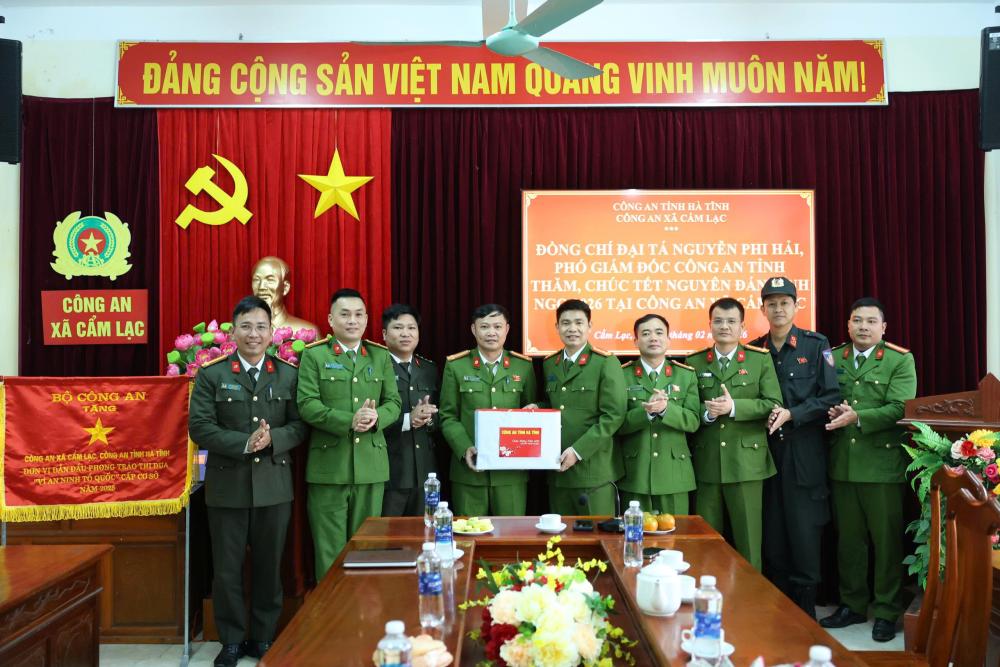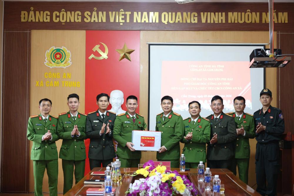 Đại tá Nguyễn Phi Hải - Phó Giám đốc Công an tỉnh trao quà và chúc Tết CBCS Công an xã Cẩm Xuyên