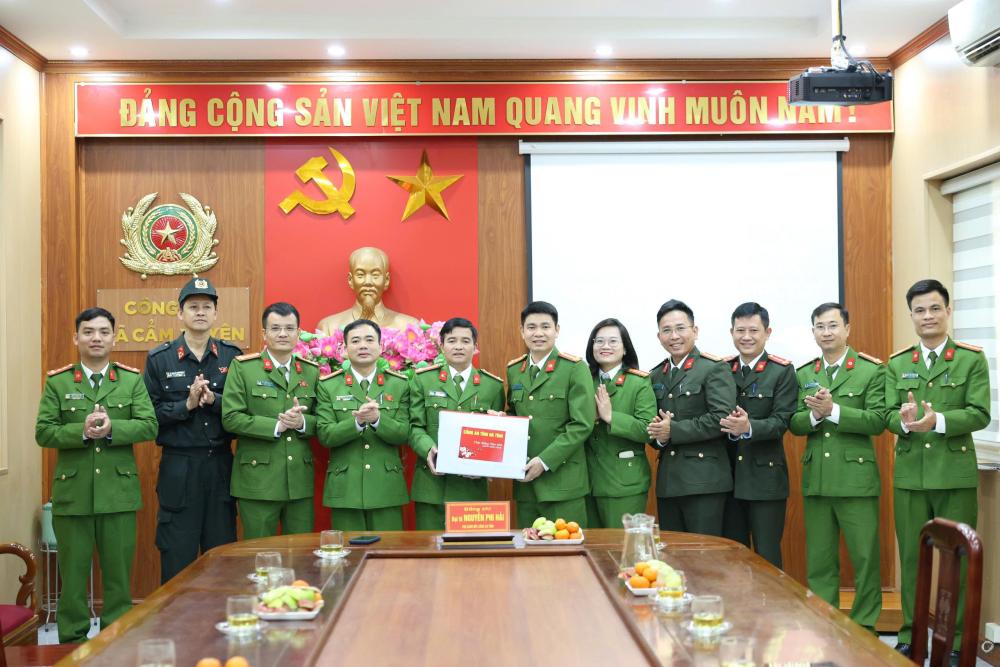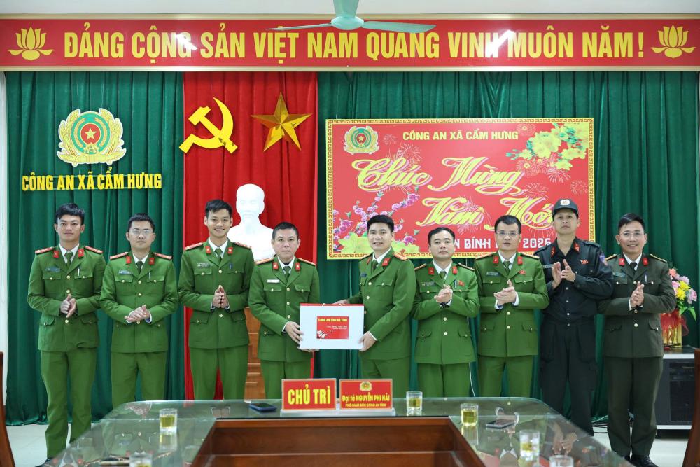 Đại tá Nguyễn Phi Hải - Phó Giám đốc Công an tỉnh trao quà và chúc Tết CBCS Công an xã Cẩm Hưng