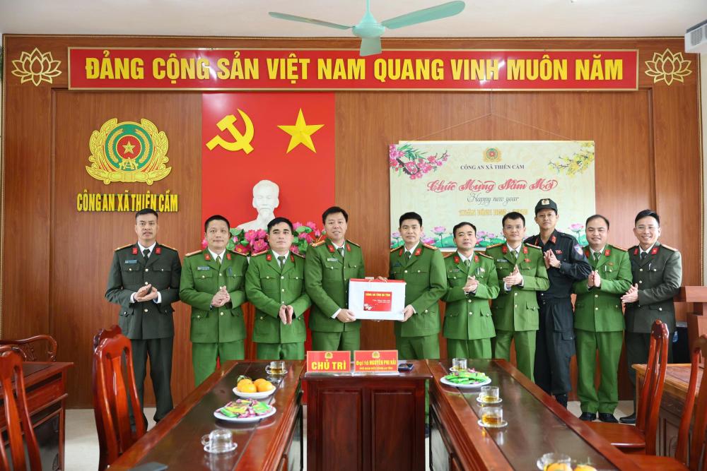 Đại tá Nguyễn Phi Hải - Phó Giám đốc Công an tỉnh trao quà và chúc Tết CBCS Công an xã Thiên Cầm