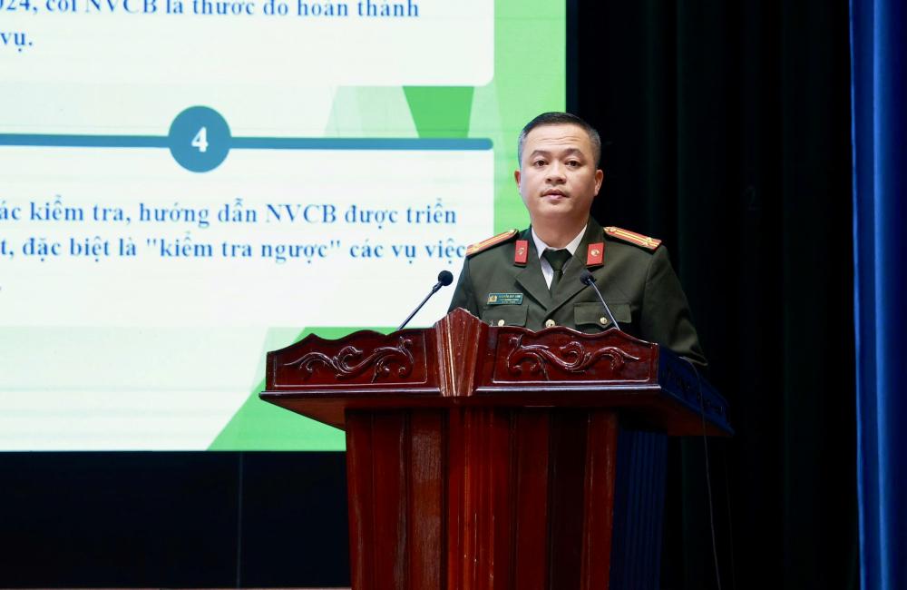 Phát biểu chỉ đạo hội nghị, Thượng tá Nguyễn Quốc Hùng, Phó Giám đốc Công an tỉnh ghi nhận, biểu dương những nỗ lực, cố gắng và kết quả mà lực lượng An ninh đã đạt được trong thời gian qua. Đồng chí yêu cầu thời gian tới, lực lượng An ninh cần tiếp tục nâng cao chất lượng công tác nắm, phân tích, dự báo tình hình; chủ động tham mưu giải quyết kịp thời các vấn đề phức tạp về an ninh quốc gia ngay từ cơ sở; chú trọng xây dựng lực lượng An ninh trong sạch, vững mạnh, chính quy, tinh nhuệ, hiện đại. Đồng thời, Thượng tá Nguyễn Quốc Hùng nhấn mạnh yêu cầu đẩy mạnh công tác nghiệp vụ cơ bản theo hướng bài bản, khoa học; tăng cường ứng dụng công nghệ thông tin, chuyển đổi số trong hoạt động nghiệp vụ; phát huy tinh thần trách nhiệm, kỷ luật, kỷ cương của cán bộ, chiến sĩ, đáp ứng yêu cầu nhiệm vụ bảo vệ an ninh quốc gia trong tình hình mới.